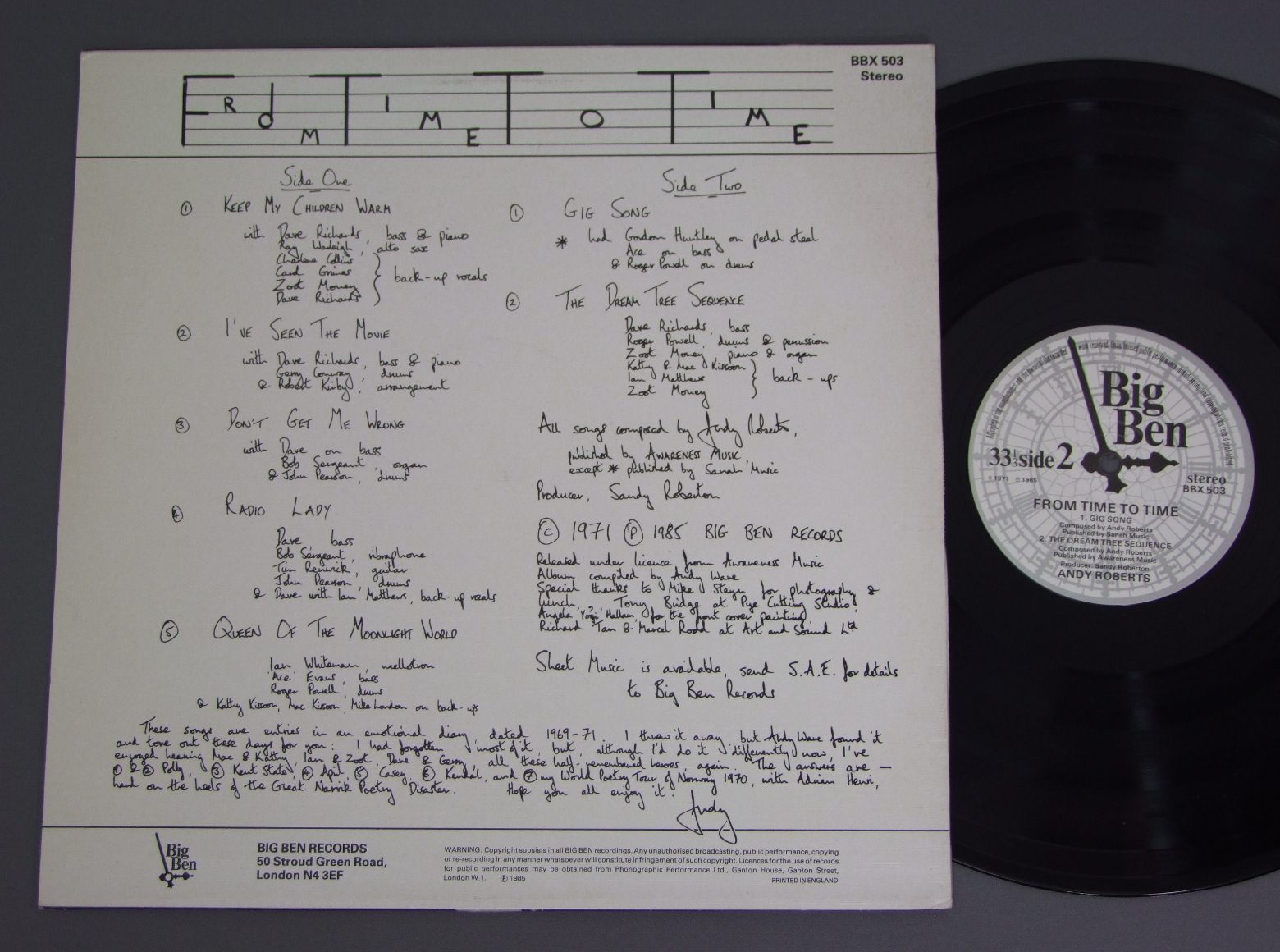 ANDY ROBERTS/FROM TIME TO TIME BBX503 製造国:英国盤 / Media:LP外観:EX盤の状態:EX- 価格(税込):¥2,200(売約済) 送料 7inch:定形外郵便 360円~LP:定形外郵便 660円~送料は、注文の最終画面で確認頂けます。 > > ANDY ROBERTS/FROM TIME TO TIME 外観 (EX)特記事項:底角でスレ。外観EXの共通説明:ダメージが限定的。中古品としては保存状態がよい方。シミ、ヨゴレ、スレ 少し~軽度。 盤の状態 (EX-)特記事項:薄いスリキズ・細かい表面スレ多少ある感じ。殆どが軽微なものの様子です。盤EX-の共通説明:盤面のスリキズが多少有り。音に出そうなものは殆ど無いように見える~さほど気にならないぐらいの軽いプチ数カ所程度。 Tweet それぞれの画像をクリックすると、大きい写真が見られます こちらの商品もお勧めです 1,870円 PAUL HORN / INSIDE 660円 REINER SUB / LIEDER BEIM WEIN 1,980円 STING / WITHOUT PROKOFIEV ( LIVE IN MINNESOTA USA 1985 ) UNOFFICAL RELEASE 1,650円 JONATHAN EDWARDS / CAPRICORN 880円 NEIL DIAMOND / SOUNDTRACK JAZZ SINGER 1,100円 VANGELS / TO THE UNKNOWN MAN 770円 ROGER MILLER / ROGER MILLER THE AMAZING 1,650円 RICK NEUFELD / PRAIRIE DOG