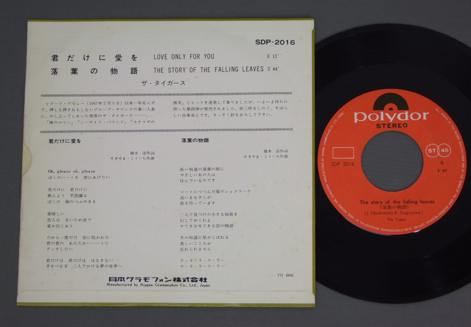 TIGERSタイガース/LOVE ONLY FOR YOU君だけに愛を SDP2016 製造国:日本盤 / Media:7inch外観:EX盤の状態:EX 価格(税込):¥440(売約済) 送料 7inch:定形外郵便 360円~LP:定形外郵便 660円~送料は、注文の最終画面で確認頂けます。 > > TIGERS/LOVE ONLY FOR YOU 外観 (EX)特記事項:裏ジャケに薄いシミ有り。外観EXの共通説明:ダメージが限定的。中古品としては保存状態がよい方。シミ、ヨゴレ、スレ 少し~軽度。 盤の状態 (EX)特記事項:薄いスリキズ・スレ少しある程度。一見してきれいな状態です。盤EXの共通説明:盤面のスリキズが薄いものが少し~軽度 音に出そうなものは無いように見える(軽微なソフトティック音は除く)。 その他:※画像では確認できない、上下ヘリ、背表紙、取り出し口を中心に状態表記しております。画像で確認出来る表裏ジャケ、レーベルの状態表記は省いている場合がありますので、そちらの状態は画像でご確認をお願い致します。携帯の方は一度PC等で写真をご確認の上ご入札下さいますよう、お願い申し上げます。 Tweet それぞれの画像をクリックすると、大きい写真が見られます こちらの商品もお勧めです 550円 TIGERSタイガース / 10 YEARS ROMANCE十年ロマンス 3,850円 OXオックス / FIRST ALBUMファースト・アルバム 1,320円 YUZO KAYAMA & LAUNCHERS加山雄三とランチャーズ / 1st ALBUM ( REISSUE )青春・愛その時 (幻の1st ALBUM ) 1,210円 WILD ONES加瀬邦彦とワイルドワンズ / ON THE BEACH`82オン・ザ・ビーチ`82 1,210円 TIGERSタイガース / TIGERS 1982十年ロマンス 770円 TIGERSタイガース / TIGERS 1982タイガース 1982 770円 TIGERSタイガース / HUMAN RENASCENCEヒューマン・ルネッサンス 770円 YUZO KAYAMA加山雄三 / GOLDEN ALBUMゴールデン・アルバム(あなたと共に)赤盤