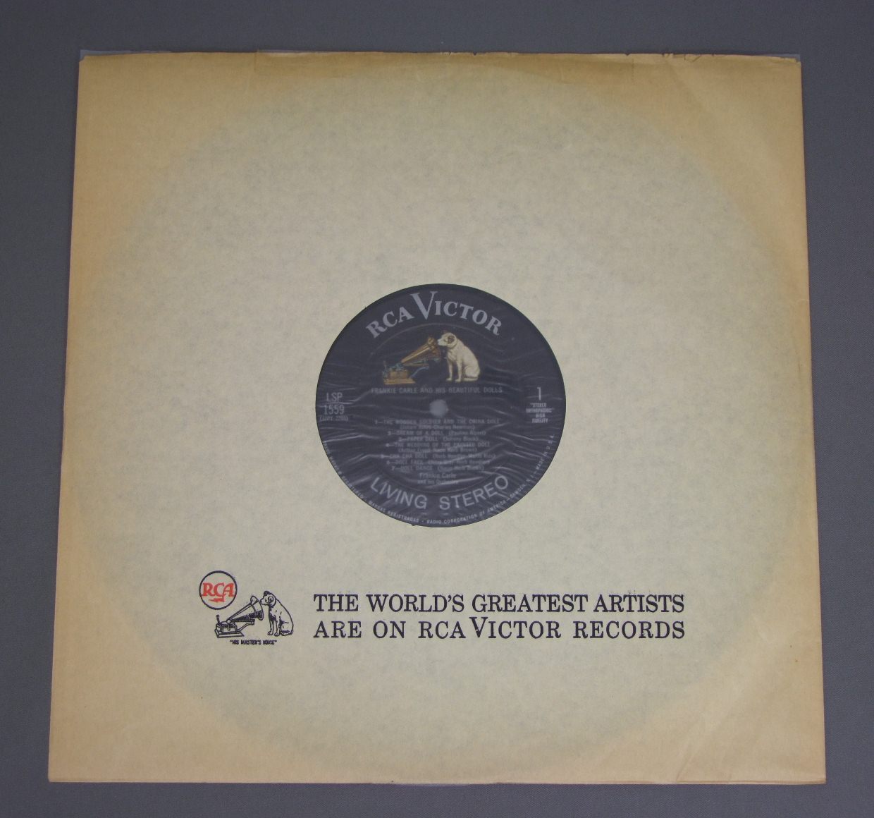 FRANKIE CARLE/AND HIS BEAUTIFUL DOLLS LSP1559 製造国:米国盤 / Media:LP外観:VG+盤の状態:VG+ 価格(税込):¥440(売約済) 送料 7inch:定形外郵便 360円~LP:定形外郵便 660円~送料は、注文の最終画面で確認頂けます。 > > FRANKIE CARLE/AND HIS BEAUTIFUL DOLLS 外観 (VG+)特記事項:上ヘリに割れや抜け、よごれ大。背によごれ軽多少有り。外観VG+の共通説明:ダメージやや有り。シミ、ヨゴレ、スレなど多少~やや多め。 盤の状態 (VG+)特記事項:薄いスリキズ・細かいスレ軽度。プチ出そうな小キズ、線キズも多少あります。全体的には軽微なものが殆どです。少し聴いてみましたが、音自体はしっかりクリアーに鳴っているようでした。盤VG+の共通説明:盤面にスリキズが多少~やや有り、音に出そうなものも多少ある。 Tweet それぞれの画像をクリックすると、大きい写真が見られます こちらの商品もお勧めです 770円 ALFRED NEWMAN / LOVE SCENES 770円 CLAUDE BLOUIN / BALLROOM DANCIHG 990円 SUSAN MAZER - STEVEN HALPERN - DALLAS SMITH / LIFETIDE