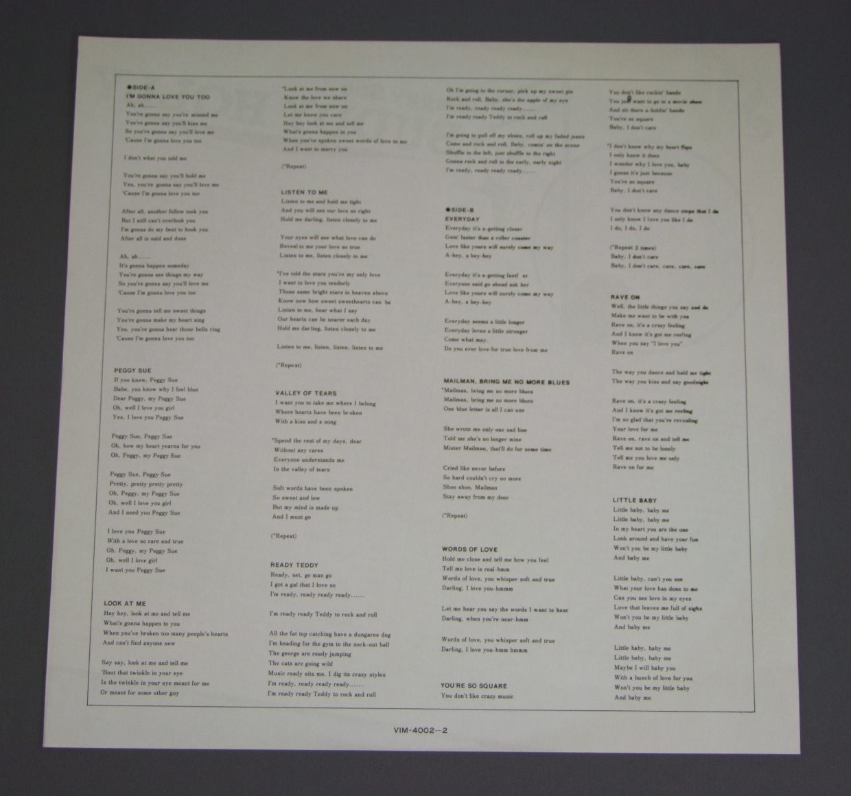 BUDDY HOLLY/BUDDY HOLLY VIM4002 製造国:日本盤 / Media:LP外観:EX+盤の状態:EX+ 価格(税込):¥440(売約済) 送料 7inch:定形外郵便 360円~LP:定形外郵便 660円~送料は、注文の最終画面で確認頂けます。 > > BUDDY HOLLY/BUDDY HOLLY 外観 (EX+)特記事項:特記無し。コンディションリストを参照下さい。外観EX+の共通説明:中古としては美品、一見してきれいでダメージが軽微。シミ、ヨゴレ、スレ有っても僅か~少し。 盤の状態 (EX+)特記事項:薄いスリキズ・スレ少し。一見してきれいな状態です。盤EX+の共通説明:盤面の極薄いスリキズ、スレ少し程度 音に出そうなものは無いように見える(極軽微なソフトティック音は除く)。 Tweet それぞれの画像をクリックすると、大きい写真が見られます こちらの商品もお勧めです 770円 ELVIS PRESLEYエルヴィス・プレスリー / ELVIS-THAT`S THE WAY IT ISこの胸のときめきを -MGM映画 エルヴィス・オン・ステージ 主題歌集 1,210円 ELVIS PRESLEY / IN PERSON AT THE INTERNATIONAL HOTEL LAS VEGAS.NEVADA 770円 WANDA JACKSONワンダ・ジャクスン / WANDA JACKSON COUNTRY !ワンダ・ジャクスン・カントリー 990円 ELVISエルヴィス / THIS IS ELVIS-SELECTIONS FROM THE ORIGINAL MOTION PICUTRE SOUNDTRACK映画 THIS IS ELVIS オリジナル・サウンドトラック 1,650円 ELVIS PLESLEYエルヴィス.プレスリー / ELVIS-THAT`S THE WAY IT ISエルヴィス.オン・ステージVOL.1 660円 PAUL ANKAポール・アンカ / BEST OF PAUL ANKAポール・アンカのすべて 1,210円 ELVIS PRESLEY / ELVIS IN PERSONプレスリー・イン・パーソン 770円 ELVIS PRESLEYエルヴィス・プレスリー / ELVIS VOL2 A LEGENDARY PERFORMER + BOOKLETエルヴィス・プレスリーの歴史 VOL2