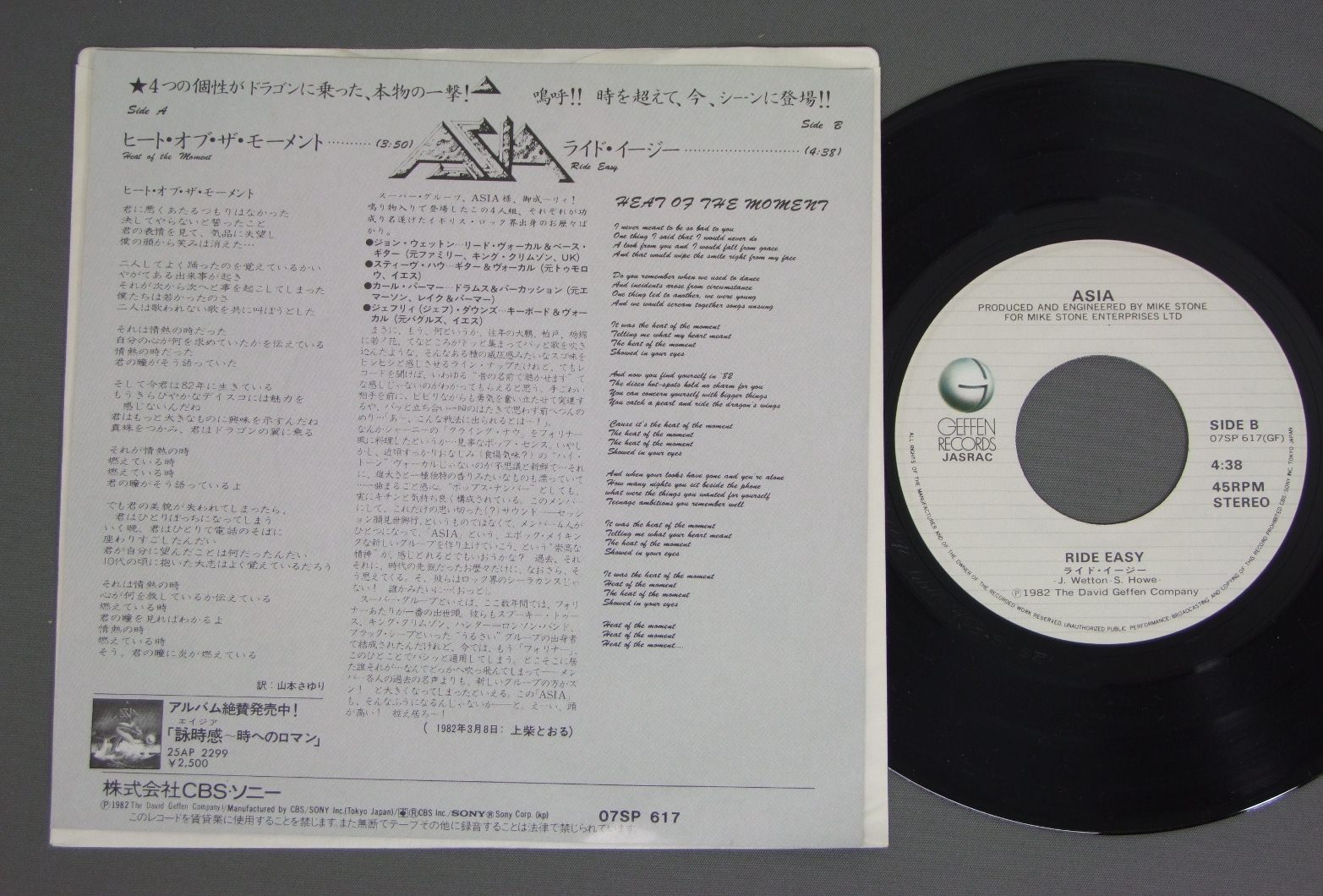 ASIA/HEAT OF THE MOMENT1st シングル 07SP617 製造国:日本盤 / Media:7inch外観:EX+盤の状態:EX+ 価格(税込):¥419(売約済) 送料 7inch:定形外郵便 360円~LP:定形外郵便 660円~送料は、注文の最終画面で確認頂けます。 > > ASIA/HEAT OF THE MOMENT 外観 (EX+)特記事項:特記無し。コンディションリストを参照下さい。外観EX+の共通説明:中古としては美品、一見してきれいでダメージが軽微。シミ、ヨゴレ、スレ有っても僅か~少し。 盤の状態 (EX+)特記事項:極薄いスリキズ・スレ少し。一見してきれいな状態です。盤EX+の共通説明:盤面の極薄いスリキズ、スレ少し程度 音に出そうなものは無いように見える(極軽微なソフトティック音は除く)。 Tweet それぞれの画像をクリックすると、大きい写真が見られます こちらの商品もお勧めです 550円 RICK WAKEMANリック・ウェイクマン / MYTHS AND LEGENDS OF KING ARTHUR AND THE KNIGHTS OF ROUND TABLEアーサー王と円卓の騎士たち 1,320円 ASIAエイジア / ASTRAアストラ 990円 EMERSON LAKE & PALMERエマーソン・レイク & パーマー / WORKS VOL 1ELP四部作 1,320円 ASIAエイジア / ASIA詠時感 660円 EMERSON LAKE & PALMERエマーソン・レイク&パーマー / PICTURES AT AN EXHIBITION展覧会の絵 1,210円 EMERSON. LAKE & PALMERエマーソン・レイク & パーマー / PICTURES AT AN EXHIBITION展覧会の絵 880円 RICK WAKEMANリック・ウェイクマン / JOURNEY TO THE CENTRE OF THE EARTH地底探検 770円 EMERSON LAKE & PALMERエマーソン・レイク&パーマー / PICTURES AT AN EXHIBITION展覧会の絵