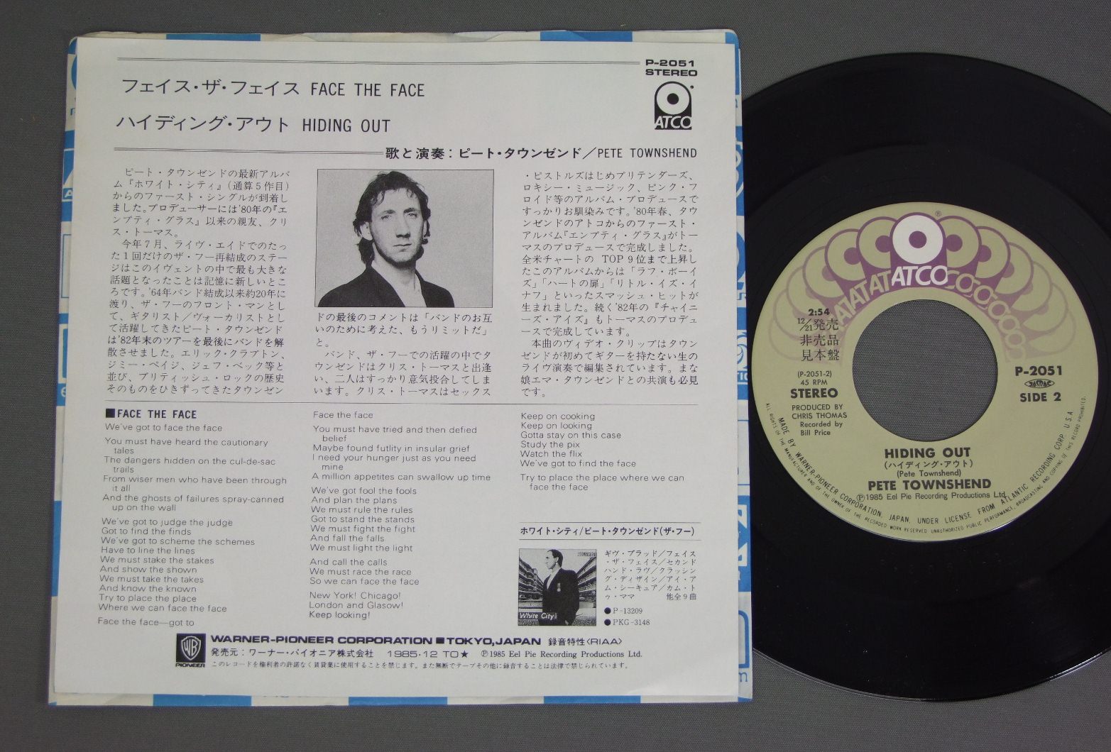 PETE TOWNSHEND/FACE THE FACE P2051 製造国:日本盤 / Media:7inch外観:EX盤の状態:EX+ 価格(税込):¥524(売約済) 送料 7inch:定形外郵便 360円~LP:定形外郵便 660円~送料は、注文の最終画面で確認頂けます。 > > PETE TOWNSHEND/FACE THE FACE 外観 (EX)特記事項:特記無し。コンディションリストを参照下さい。外観EXの共通説明:ダメージが限定的。中古品としては保存状態がよい方。シミ、ヨゴレ、スレ 少し~軽度。 その他:※画像では確認できない、上下ヘリ、背表紙、取り出し口を中心に状態表記しております。画像で確認出来る表裏ジャケ、レーベルの状態表記は省いている場合がありますので、そちらの状態は画像でご確認をお願い致します。携帯の方は一度PC等で写真をご確認の上ご入札下さいますよう、お願い申し上げます。 Tweet それぞれの画像をクリックすると、大きい写真が見られます こちらの商品もお勧めです 2,200円 WHOフー / IT`S HARDイッツ・ハード 1,650円 ROGER DALTREYロジャー・ダルトリー / UNDER A RAGING MOON月の影