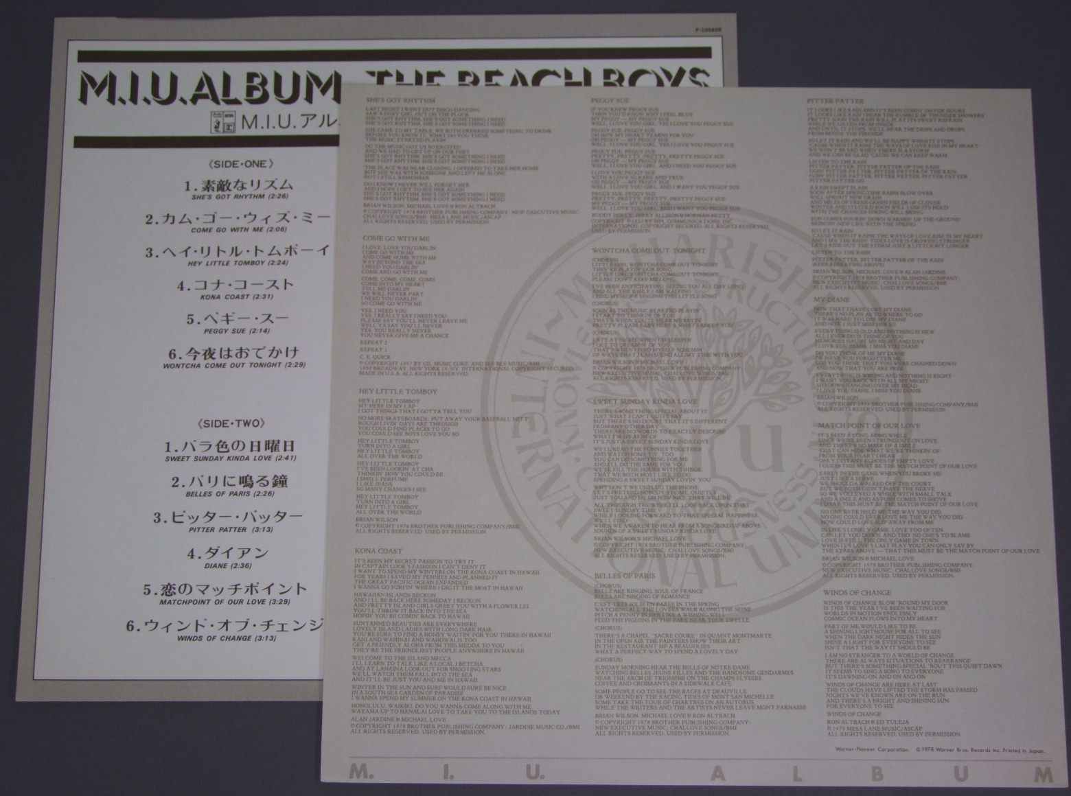 BEACH BOYS/MIU ALBUM P10560R 製造国:日本盤 / Media:LP外観:EX盤の状態:EX+ 価格(税込):¥734(売約済) 送料 7inch:定形外郵便 360円~LP:定形外郵便 660円~送料は、注文の最終画面で確認頂けます。 > > BEACH BOYS/MIU ALBUM 外観 (EX)特記事項:上ヘリ付近に日焼け退色軽。外観EXの共通説明:ダメージが限定的。中古品としては保存状態がよい方。シミ、ヨゴレ、スレ 少し~軽度。 盤の状態 (EX+)特記事項:薄いスリキズ・スレ少し。一見してきれいな状態です。盤EX+の共通説明:盤面の極薄いスリキズ、スレ少し程度 音に出そうなものは無いように見える(極軽微なソフトティック音は除く)。 その他:※画像では確認できない、上下ヘリ、背表紙、取り出し口を中心に状態表記しております。画像で確認出来る表裏ジャケ、レーベルの状態表記は省いている場合がありますので、そちらの状態は画像でご確認をお願い致します。携帯の方は一度PC等で写真をご確認の上ご入札下さいますよう、お願い申し上げます。 Tweet それぞれの画像をクリックすると、大きい写真が見られます こちらの商品もお勧めです 1,210円 BEACH BOYSビーチ・ボーイズ / BEACH BOYSビーチ・ボーイズ
