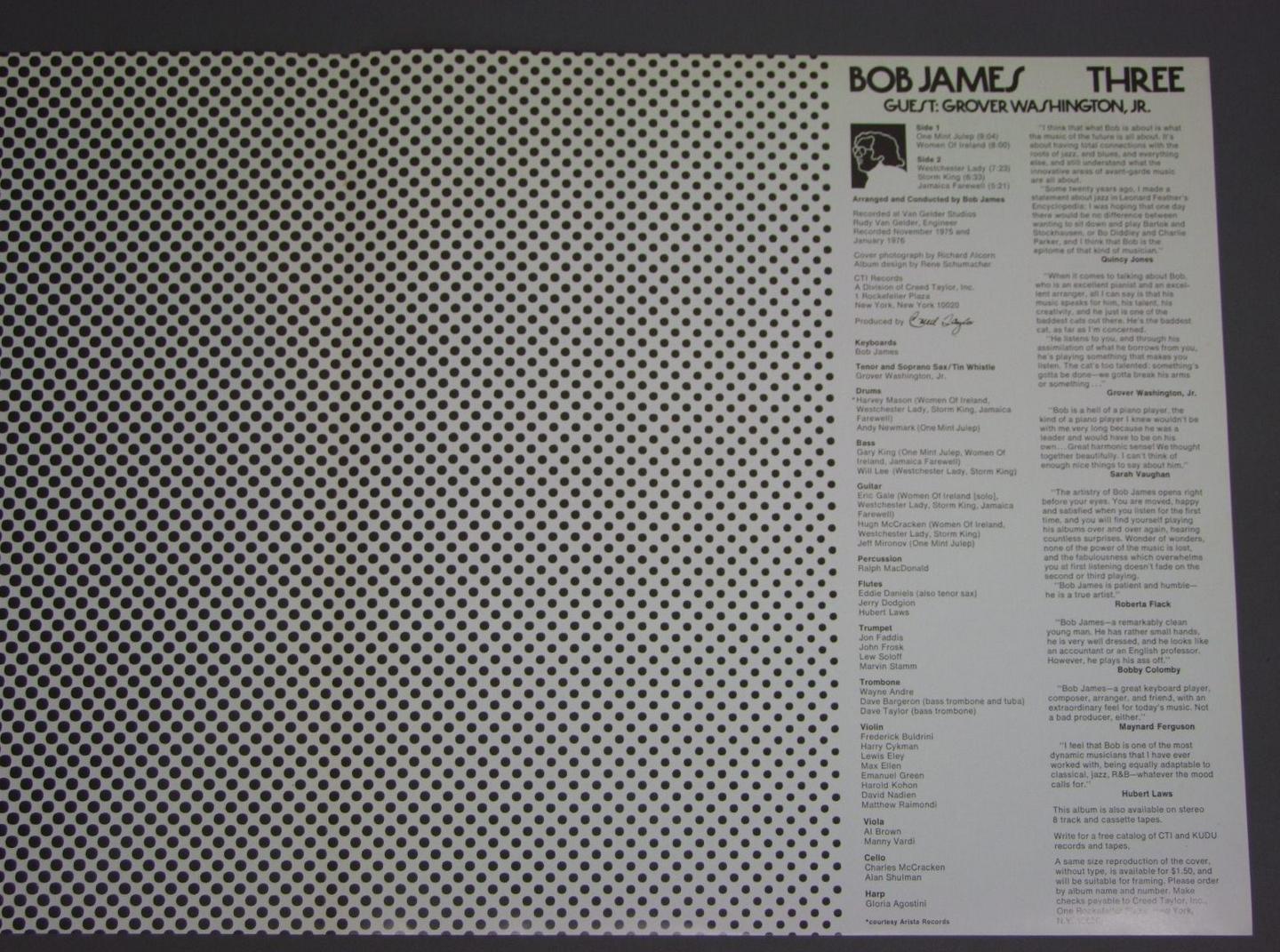 BOB JAMES/BOB JAMES THREEボブジェームス3 LAX 3235 製造国:日本盤 / Media:LP外観:EX+盤の状態:EX+ 価格(税込):¥734(売約済) 送料 7inch:定形外郵便 360円~LP:定形外郵便 660円~送料は、注文の最終画面で確認頂けます。 > > BOB JAMES/BOB JAMES THREE 盤の状態 (EX+)特記事項:極薄いスリキズ・スレ少し。一見してきれいな状態です。盤EX+の共通説明:盤面の極薄いスリキズ、スレ少し程度 音に出そうなものは無いように見える(極軽微なソフトティック音は除く)。 その他:※画像では確認できない、上下ヘリ、背表紙、取り出し口を中心に状態表記しております。画像で確認出来る表裏ジャケ、レーベルの状態表記は省いている場合がありますので、そちらの状態は画像でご確認をお願い致します。携帯の方は一度PC等で写真をご確認の上ご入札下さいますよう、お願い申し上げます。 Tweet それぞれの画像をクリックすると、大きい写真が見られます こちらの商品もお勧めです 1,320円 SUPER JAZZ TRIOスーパー・ジャズ・トリオ / THE STANDARDザ・スタンダード 770円 CHARLIE PARKERチャーリー・パーカー / CHARLIE PARKER ON SAVOY VOL6チャーリー・パーカー・オン・サヴォイVOL6 440円 MOE KOFFMAN / GOES ELECTRIC 660円 JACQUES LOUSSIERジャック・ルーシエ・トリオ / PLAY BACH VOL.4プレイ・バッハ 第4集 1,210円 LENNY WHITEレニー・ホワイト / STREAMLINEストリームライン 880円 V-DISC ALL-STAR JAM SESSIONSVディスク・オールスター・ジャムセッション / V-DISC ALL-STAR JAM SESSIONSVディスク・オールスター・ジャムセッション VOL.5 770円 TOSHIYUKI ICHIMURA市村俊幸 / MY LIFE MY PIANO 770円 MUGGSY SPANIERマグシー・スパニア / MUGGSY SPANIERマグシー・スパニア
