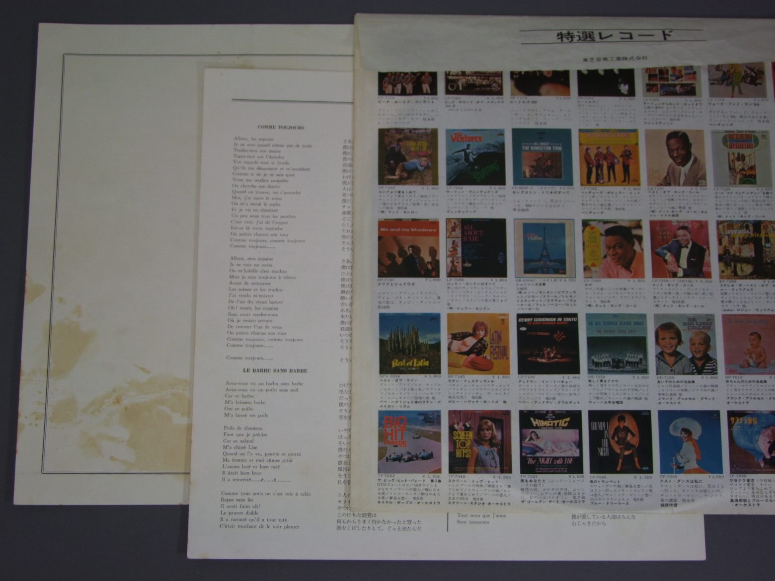 ADAMOアダモ/A LOYMPIAオリンピア劇場のアダモ ペラジャケ赤盤 OP7472 製造国:日本盤 / Media:LP外観:EX盤の状態:EX 価格(税込):¥0(売約済) 送料 7inch:定形外郵便 360円~LP:定形外郵便 660円~送料は、注文の最終画面で確認頂けます。 > > ADAMO/A LOYMPIA 外観 (EX)特記事項:背上角でヨレ。裏ジャケ側は多少日焼感有り。東芝インナーはヤブレやヨレ有り。解説カードにシミ。外観EXの共通説明:ダメージが限定的。中古品としては保存状態がよい方。シミ、ヨゴレ、スレ 少し~軽度。 盤の状態 (EX)特記事項:薄いスリキズ・スレ軽くある感じ。ほとんどが軽微なものの様子です。盤EXの共通説明:盤面のスリキズが薄いものが少し~軽度 音に出そうなものは無いように見える(軽微なソフトティック音は除く)。 Tweet それぞれの画像をクリックすると、大きい写真が見られます こちらの商品もお勧めです 1,210円 TIM GOODMANティム・グッドマン / FOOTSTEPSフリーダム・ストリート 770円 CAT STEVENSキャット・スティーヴンス / CATCH BULL AT FOURキャッチ・ブル・アット・フォー 660円 LARRY FASTラリー・ファースト / ELECTRONIC REALIZATIONS FOR ROCK ORCHESTRA/SYNERGY「エレクトロニクスによるロック・オーケストラの実現」シナジー 660円 ERIC CARMENエリック・カルメン / CHANGE OF HEARTチェンジ・オブ・ハート 660円 NEIL DIAMONDニール・ダイアモンド / LOVE AT THE GREEKラブ・アット・ザ・グリーク ニール・ダイアモンド・ベスト・ライブ 990円 PAUL ANKAポール・アンカ / BEST OF PAUL ANKAポール・アンカのすべて 770円 ELTON JOHNエルトン・ジョン / SINGLE MANシングル・マン 1,320円 NEIL DIAMONDニール・ダイアモンド / JONATHAN LIVINGSTON SEAGULLかもめのジョナサン