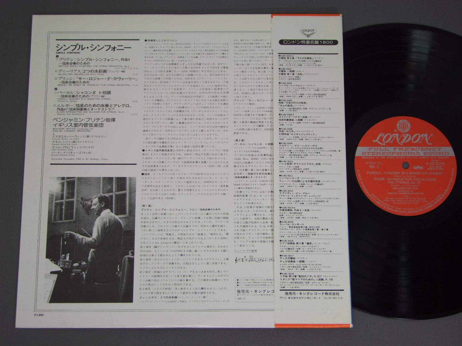 BENJAMIN BRITTENブリテン/SIMPLE SYMPHONY K18C9204 製造国:日本盤 / Media:LP外観:EX+盤の状態:EX+帯:EX 価格(税込):¥838(売約済) 送料 7inch:定形外郵便 360円~LP:定形外郵便 660円~送料は、注文の最終画面で確認頂けます。 > > BENJAMIN BRITTEN/SIMPLE SYMPHONY 外観 (EX+)特記事項:特記無し。コンディションリストを参照下さい。外観EX+の共通説明:中古としては美品、一見してきれいでダメージが軽微。シミ、ヨゴレ、スレ有っても僅か~少し。 盤の状態 (EX+)特記事項:極薄いスリキズ・スレ少しだけ。一見してきれいな状態です。盤EX+の共通説明:盤面の極薄いスリキズ、スレ少し程度 音に出そうなものは無いように見える(極軽微なソフトティック音は除く)。 帯の状態 (EX):ヨレが少し。 その他:※画像では確認できない、上下ヘリ、背表紙、取り出し口を中心に状態表記しております。画像で確認出来る表裏ジャケ、レーベルの状態表記は省いている場合がありますので、そちらの状態は画像でご確認をお願い致します。携帯の方は一度PC等で写真をご確認の上ご入札下さいますよう、お願い申し上げます。 Tweet それぞれの画像をクリックすると、大きい写真が見られます こちらの商品もお勧めです 990円 MONTEUXモントゥー / HAYDON SYM. NO94 `SURPRISE` SYM. NO101`CLOCK`モントゥーの `驚がく` `時計` ハイドン 990円 KEMPFF-FERDINAND LEITNERケンプ-ライトナー / BEETHOVEN-PIANO CONC. NO5ベートーヴェン-ピアノ協奏曲 第5番 皇帝 990円 STEIN-VIENNA PHILHARMONIC ORCHESTRAシュタイン - ウィーン・フィル / BEETHOVEN - PIANO CONCERTO No.4ベートーヴェン - ピアノ協奏曲 第4番 990円 FURTWANGLERフルトヴェングラー / BEETHOVEN OVERTURES `CORIORAN`-`LEONOR` ベ−ト―ベン コリオラン序曲 レオノ-レ序曲 第2番 A 1,320円 PERLMANN - GIULINI - PHILHARMONIA ORCHESTRAパールマン - ジュリーニ - フィルハーモニア管弦楽団 / BEETHOVEN - VIORIN CONCERTOベートーヴェン - ヴァイオリン協奏曲 770円 ADORJANアドリヤン / MOZART/CONC. FOR FLUTE. HARPモーツァルト/フルートとハープのための協奏曲 990円 ESCHENBACH - KARAJAN- BPOエッシェンバッハ - カラヤン -ベルリンフィル / BEETHOVEN CONC. FOR PIANOベートーヴェン ピアノ協奏曲第1番 1,430円 SZELL - CLEVELAND ORCH.セル - クリーヴランド管弦楽団 / BEETHOVEN - SYMPHONY No9ベートーヴェン交響曲第9番合唱