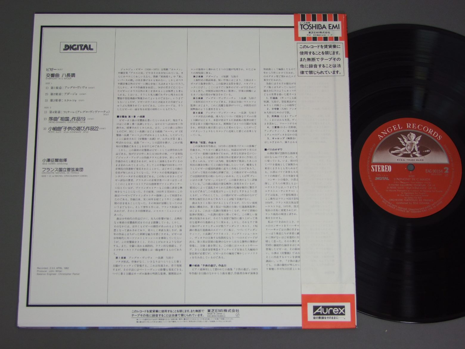 小澤征爾/BIZET SYMPHONY IN Cビゼー 交響曲ハ長調 EAC90154 製造国:日本盤 / Media:LP外観:EX+盤の状態:EX-帯:EX+ 価格(税込):¥660(売約済) 送料 7inch:定形外郵便 360円~LP:定形外郵便 660円~送料は、注文の最終画面で確認頂けます。 > > /BIZET SYMPHONY IN C 外観 (EX+)特記事項:特記無し。コンディションリストを参照下さい。外観EX+の共通説明:中古としては美品、一見してきれいでダメージが軽微。シミ、ヨゴレ、スレ有っても僅か~少し。 盤の状態 (EX-)特記事項:薄いスリキズ・細かい表面スレ軽くある感じ。プチ出そうな所は少し、全体的には殆どが軽微なものの様子です。盤EX-の共通説明:盤面のスリキズが多少有り。音に出そうなものは殆ど無いように見える~さほど気にならないぐらいの軽いプチ数カ所程度。 帯の状態 (EX+):特記無し。コンディションリストを参照下さい。 Tweet それぞれの画像をクリックすると、大きい写真が見られます こちらの商品もお勧めです 1,430円 KARAJAN - BERLIN PHILHARMONIC ORCHESTRAカラヤン - ベルリンフィルハーモニー管弦楽団 / WAGNER - ORCHESTRA WORKSワーグナー 8大管弦楽曲集 990円 TOSCANINI - NEW YORK PHILHARMONIC ORCHトスカニーニ - ニューヨーク・フィル / BEETHOVEN - SYM NO7ベートーヴェン交響曲第7番 990円 MATACIC - KLETZKI - CZECH PHIL.マタチッチ - クレツキ - チェコ・フィルハーモニー管弦楽団 / BEETHOVEN - SYMPHONY NO3ベートーヴェン - 交響曲第3番 英雄 - コリオラン序曲 990円 BOHM - VIENNA PHIL.ベーム - ウィーン・フィル / HAYDON - SYM. NO91 & 92ハイドン - 交響曲第91番92番 990円 BOHM - BERLIN PHILHARMONIC ORCH.ベーム - ベルリン・フィル / MORZART - SYM NO35 & NO38モーツアルト - 交響曲第35番38番 990円 WALTER - COLUMBIA SYMPHONY ORCH.ワルター - コロンビア交響楽団 / MOZART ORCH.L FAVORITESモーツァルト管弦楽名曲集 990円 MARRINER - ACADEMY OF ST MARTIN IN THE FEILDSマリナー - アカデミー室内管弦楽団 / ACADEMY BY THE REQUESTデジタル・アカデミー・イン・コンサート 990円 STOKOWSKIストコフスキー / BERLIOZ SYM. FANTASTIQUEベルリオーズ 幻想交響曲