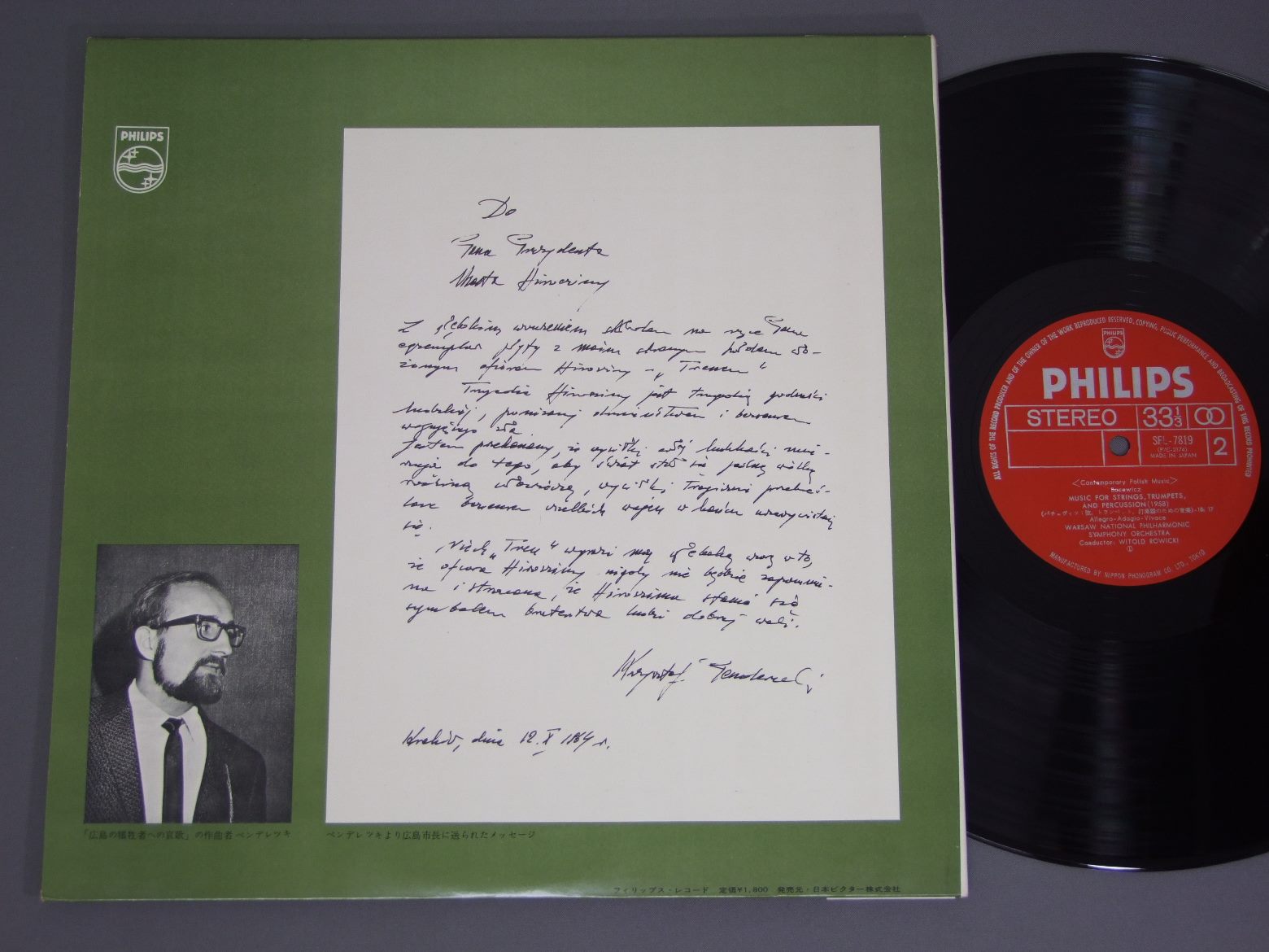 ロヴィツキー/CONTEMPORARY POLISH MUSIC広島の犠牲者への哀歌 SFL7819 製造国:日本盤 / Media:LP外観:EX+盤の状態:EX+帯:EX+ 価格(税込):¥3,300(売約済) 送料 7inch:定形外郵便 360円~LP:定形外郵便 660円~送料は、注文の最終画面で確認頂けます。 > > /CONTEMPORARY POLISH MUSIC 外観 (EX+)特記事項:特記無し。コンディションリストを参照下さい。外観EX+の共通説明:中古としては美品、一見してきれいでダメージが軽微。シミ、ヨゴレ、スレ有っても僅か~少し。 盤の状態 (EX+)特記事項:極薄いスリキズ・スレ少し。一見してきれいな状態です。音にでそうなものはほぼ無く、有ってもソフトティック少し程度でしょう。盤EX+の共通説明:盤面の極薄いスリキズ、スレ少し程度 音に出そうなものは無いように見える(極軽微なソフトティック音は除く)。 帯の状態 (EX+):特記無し。コンディションリストを参照下さい。 Tweet それぞれの画像をクリックすると、大きい写真が見られます こちらの商品もお勧めです 1,210円 PONTI - KAPP - HAMBURG SYMPHONYポンティ - カップ - ハンブルグ交響楽団 / RAFF - PIANO CONCERTOヨアヒム・ラフ作品集 1,320円 YUZO TOYAMA外山雄三 / HIROOKI OGAWA/SYM. THE CASTLE OF JAPAN小川寛興/交響曲 日本の城 2,200円 BERBERIAN BURGEバーベリアン バーグ / BERIO VISAGE-SEQUENZA 3ベリオ作品集 990円 MANFRED REICHERTマンフレート・ライヒェルト / HINDEMITH - DIE 3 KAMMERMUSIKENヒンデミット - 室内音楽第1番 2番 6番 1,320円 JESS THOMAS - BOULEZ - BBC SYMPHONY ORCHESTRAJ.トーマス - ブレーズ - BBC交響楽団 / SCHOENBERG - GURRE LIEDERシェーンベルク - グレの歌 1,980円 SEIJI OZAWA小沢征爾 / SCHOENBERG-GURRELIEDERシェーンベルク-グレの歌 990円 CHIKASHI TANAKA - KAORU CHIBA - REIKO HONSHO田中千香士 - 千葉馨 - 本荘玲子 / TERUYUKI NODA - TRIO POUR VIOLIN. COR ET PIANO野田暉行 - ヴァイオリン.ホルン.ピアノのための三重奏曲 1,760円 OLIVIER MESSIAENオリヴィエ・メシアン / QUATUOR POUR LA FIN DU TEMPS世の終わりのための四重奏曲