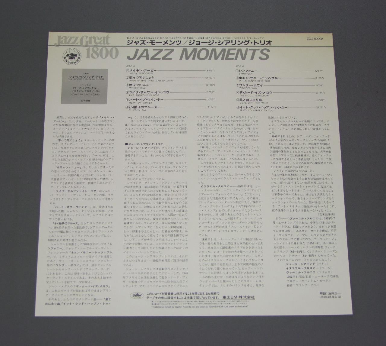 ジョージ・シアリング・トリオ/JAZZ MOMENTSジャズ・モーメンツ ECJ50095 製造国:日本盤 / Media:LP外観:EX+盤の状態:EX帯:EX+ 価格(税込):¥660(売約済) 送料 7inch:定形外郵便 360円~LP:定形外郵便 660円~送料は、注文の最終画面で確認頂けます。 > > /JAZZ MOMENTS 外観 (EX+)特記事項:特記無し。コンディションリストを参照下さい。外観EX+の共通説明:中古としては美品、一見してきれいでダメージが軽微。シミ、ヨゴレ、スレ有っても僅か~少し。 盤の状態 (EX)特記事項:薄いスリキズ・スレ少しある程度。一見してきれいな状態です。盤EXの共通説明:盤面のスリキズが薄いものが少し~軽度 音に出そうなものは無いように見える(軽微なソフトティック音は除く)。 帯の状態 (EX+):特記無し。コンディションリストを参照下さい。 その他:白見本盤 Tweet それぞれの画像をクリックすると、大きい写真が見られます こちらの商品もお勧めです 1,210円 MODERN JAZZ QUARTETモダン・ジャズ・カルテット / THIS ONE`S FOR BASIEジス・ワンズ・フォー・ベイシー 1,650円 ALBERT AYLERアルバート・アイラー / VOLUME 1ラスト・レコーディング VOL1 770円 BUDDY RICHバディ・リッチ / DIFFERENT DRUMMERディファレント・ドラマー 1,210円 WYNTON KELLYウィントン・ケリー / KELLY BLUEケリー・ブルー 1,320円 THE QUINTETパーカー - ガレスピー - パウエル - ローチ - ミンガス / JAZZ AT MASSEY HALLジャズ・アット・マッセイ・ホール 1,210円 HERBIE MANNハービー・マン / MEMPHIS UNDERGROUNDメンフィス・アンダーグラウンド 770円 BRUCE FORMANブルース・フォアマン / FIVER JOURNEYリヴァー・ジャーニー 770円 GEORGE LEWISジョージ・ルイス / IN TOKYO1963年8月都響厚生年金会館ライブ