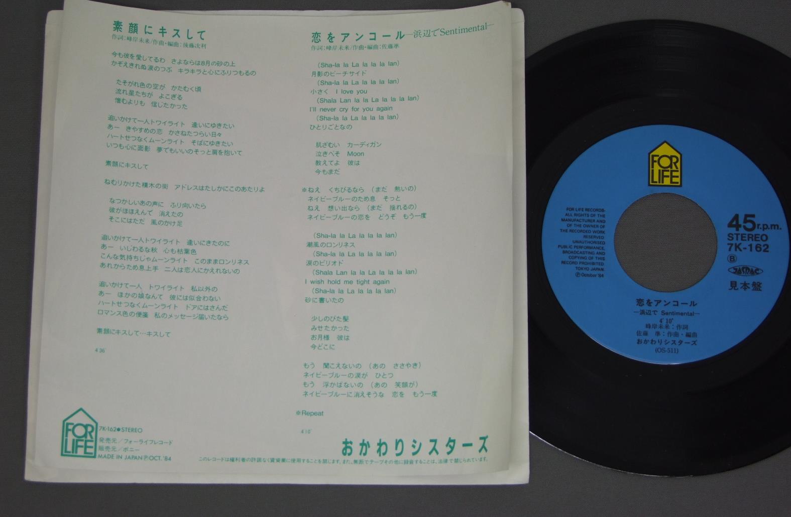 OKAWARI SISTERSおかわりシスターズ/ KISS ME素顔にキスして 7K162 製造国:日本盤 / Media:7inch外観:EX盤の状態:EX+ 価格(税込):¥440 送料 7inch:定形外郵便 360円~LP:定形外郵便 660円~送料は、注文の最終画面で確認頂けます。 > > OKAWARI SISTERS/ KISS ME 外観 (EX)特記事項:特記無し。コンディションリストを参照下さい。外観EXの共通説明:ダメージが限定的。中古品としては保存状態がよい方。シミ、ヨゴレ、スレ 少し~軽度。 盤の状態 (EX+)特記事項:極薄いスリキズ・スレ少し。一見してきれいな状態です。盤EX+の共通説明:盤面の極薄いスリキズ、スレ少し程度 音に出そうなものは無いように見える(極軽微なソフトティック音は除く)。 その他:見本盤 Tweet それぞれの画像をクリックすると、大きい写真が見られます こちらの商品もお勧めです 770円 KENJI SAWADA沢田研二 / OMOIKKIRI KIZANA JINSEI思いきり気障な人生 1,650円 TAKUROU YOSHIDA吉田拓郎 / IN BUDOKAN王様達のハイキング IN BUDOKAN 1,210円 I. GEORGEアイ・ジョージ / BEST20 DELUXEベスト20デラックス 770円 `SHOW` AIKAWA哀川翔 / ANTITHESE TRAIN ANTITHESE FLIGHTアンチテーゼ・トレイン アンチテーゼフライト 1,320円 TAKAKO SHIRAI白井貴子 / PRINCESS NIGHTプリンセスナイト 1,650円 UCHOTEN有頂天 / PEACEピース 770円 KAZUHIKO KATOH加藤和彦 / L`OPERA FRAGILE 1,320円 TAMAKI SAWA沢たまき / DON`T SMOKE IN BEDベッドで煙草を吸わないで