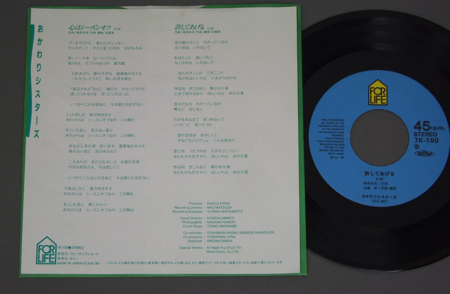 OKAWARI SISTERSおかわりシスターズ/ MY HEART IS SEASON OFF心はシーズンオフ 7K150 製造国:日本盤 / Media:7inch外観:EX-盤の状態:EX 価格(税込):¥440 送料 7inch:定形外郵便 360円~LP:定形外郵便 660円~送料は、注文の最終画面で確認頂けます。 > > OKAWARI SISTERS/ MY HEART IS SEASON OFF 外観 (EX-)特記事項:ヨレ多少有り。外観EX-の共通説明:ダメージ軽度~多少。 中古品としては普通の状態。シミ、ヨゴレ、スレなど軽く~多少。 盤の状態 (EX)特記事項:薄いスリキズ・スレ軽くある感じ。一見してきれいな印象です。盤EXの共通説明:盤面のスリキズが薄いものが少し~軽度 音に出そうなものは無いように見える(軽微なソフトティック音は除く)。 Tweet それぞれの画像をクリックすると、大きい写真が見られます こちらの商品もお勧めです 990円 YOUSUI INOUE井上陽水 / LIVE陽水ライヴ-もどり道 1,210円 SNAKEMAN SHOWスネークマン・ショー / SNAKEMAN SHOWスネークマン・ショー 1,210円 PEDRO & CAPRICIOUSペドロ&カプリシャス / お気に召すまま 880円 JUNKO OHASHI大橋純子 / MY LOVEたそがれマイ・ラブ 770円 HIROMI IWASAKI岩崎宏美 / HIKOUSEN飛行船 1,650円 RC SUCCESIONRCサクセション / BEAT POPSBEAT POPS-RCサクセション 880円 YUMI MATSUTOYA松任谷由実 / RE INCARNATIONリ・インカーネイション 770円 YOSUI INOUE井上陽水 / YOSUI 2 ( SENTIMENTAL )陽水?センチメンタル