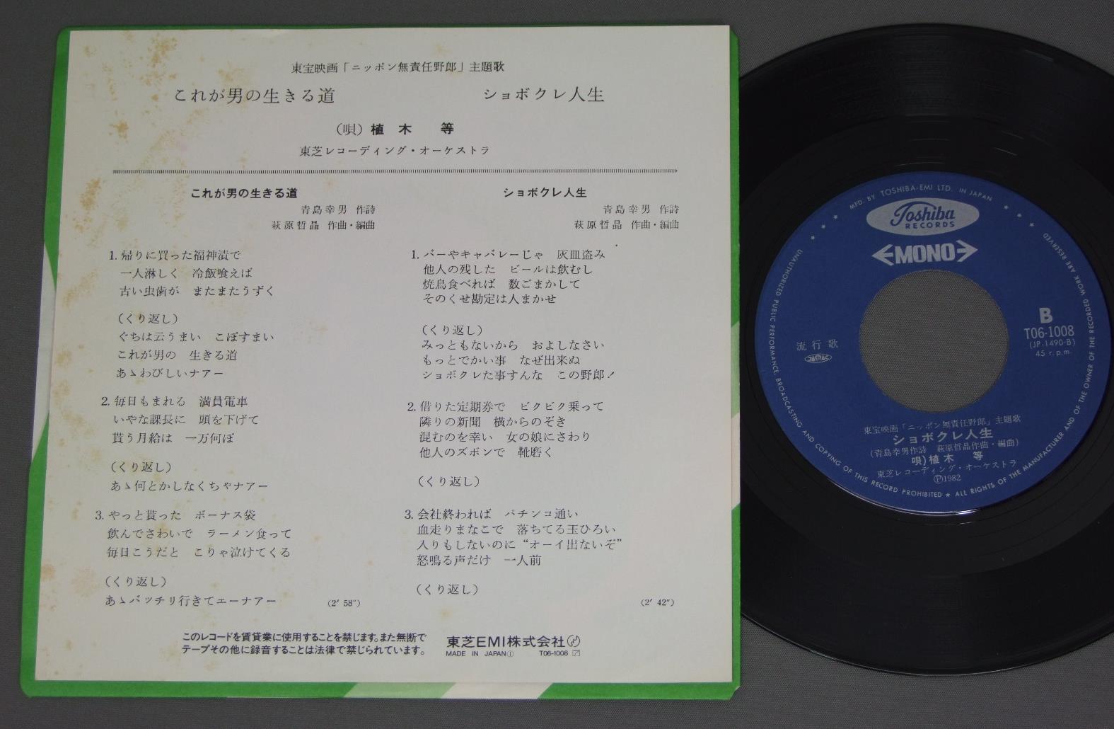 植木等/これが男の生きる道 再発盤 T06-1008 製造国:日本盤 / Media:7inch外観:EX-盤の状態:EX+ 価格(税込):¥524(売約済) 送料 7inch:定形外郵便 360円~LP:定形外郵便 660円~送料は、注文の最終画面で確認頂けます。 > > / 外観 (EX-)特記事項:裏側にシミ外観EX-の共通説明:ダメージ軽度~多少。 中古品としては普通の状態。シミ、ヨゴレ、スレなど軽く~多少。 盤の状態 (EX+)特記事項:極薄いスリキズ・スレ少しだけ。一見してきれいな状態です。盤EX+の共通説明:盤面の極薄いスリキズ、スレ少し程度 音に出そうなものは無いように見える(極軽微なソフトティック音は除く)。 Tweet それぞれの画像をクリックすると、大きい写真が見られます こちらの商品もお勧めです 770円 HIBARI MISORA美空ひばり / 1932-35芸能生活30周年記念 歌謡曲50年 第2集 ( 昭和7- 10年) 880円 TOSHIRO OKAMOTO岡本敦朗 / SHIROI HANA NO SAKUKORO白い花の咲く頃 990円 YOSHIO TABATA田端義夫 / SHIMA SODACHI島育ち 550円 HISAO ITO伊藤久男 / BEST ALBUM懐しの歌声 伊藤久男と共に 1,210円 KEIICHIRO AKAGI赤木圭一郎 / EIEN-NO-TONY永遠のトニー 赤木圭一郎絶唱集 880円 上原敏 / 憶い出の任侠・時代歌謡-ポリドール SP原盤 シリーズ 660円 AKIRA MATSUDAIRA松平晃 / CIRCUS SONG懐かしの針音 松平晃 サーカスの唄 770円 三浦洸一 / ゴールデン・ヒット