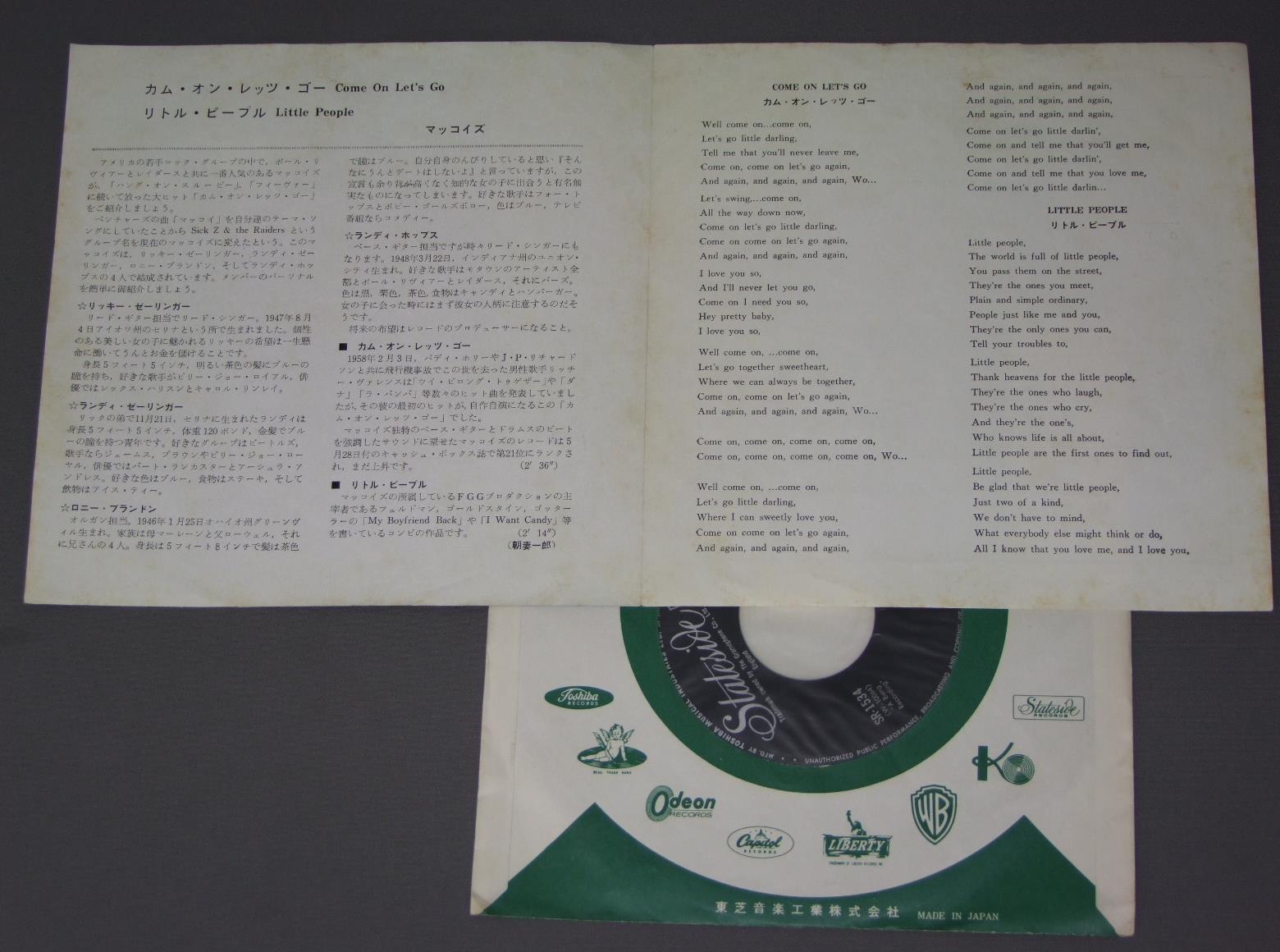 McCOYSマッコイズ/COME ON LET`S GOカム・オン・レッツ・ゴー赤盤 SR1534 製造国:日本盤 / Media:7inch外観:VG+盤の状態:EX 価格(税込):¥20,904(売約済) 送料 7inch:定形外郵便 360円~LP:定形外郵便 660円~送料は、注文の最終画面で確認頂けます。 > > McCOYS/COME ON LET`S GO 外観 (VG+)特記事項:ヨレやや有り。見開きや裏ジャケにシミ。外観VG+の共通説明:ダメージやや有り。シミ、ヨゴレ、スレなど多少~やや多め。 盤の状態 (EX)特記事項:薄いスリキズ・スレ軽くある感じ。ほとんどが軽微なものの様子です。盤EXの共通説明:盤面のスリキズが薄いものが少し~軽度 音に出そうなものは無いように見える(軽微なソフトティック音は除く)。 その他:赤盤 Tweet それぞれの画像をクリックすると、大きい写真が見られます こちらの商品もお勧めです 770円 REO SPEEDWAGONREO スピードワゴン / HI INFIDELITY禁じられた夜 1,320円 CATE BROTHERS BANDケイト・ブラザーズ・バンド / RENDEZVOUSランデヴー 1,210円 5TH DIMENSIONフィフス・ディメンソン / THE BESTフィフス・ディメンソン 1,650円 STYXスティクス / PARADISE THEATREパラダイス・シアター 770円 STYXスティクス / CORNERSTONEコーナーストーン 1,320円 PLAYERプレイヤー / SPIES OF LIFEスパイズ・オブ・ライフ 770円 TOTO / ISOLATIONアイソレーション 1,320円 ROMANTICSロマンティックス / IN HEATイン・ヒート