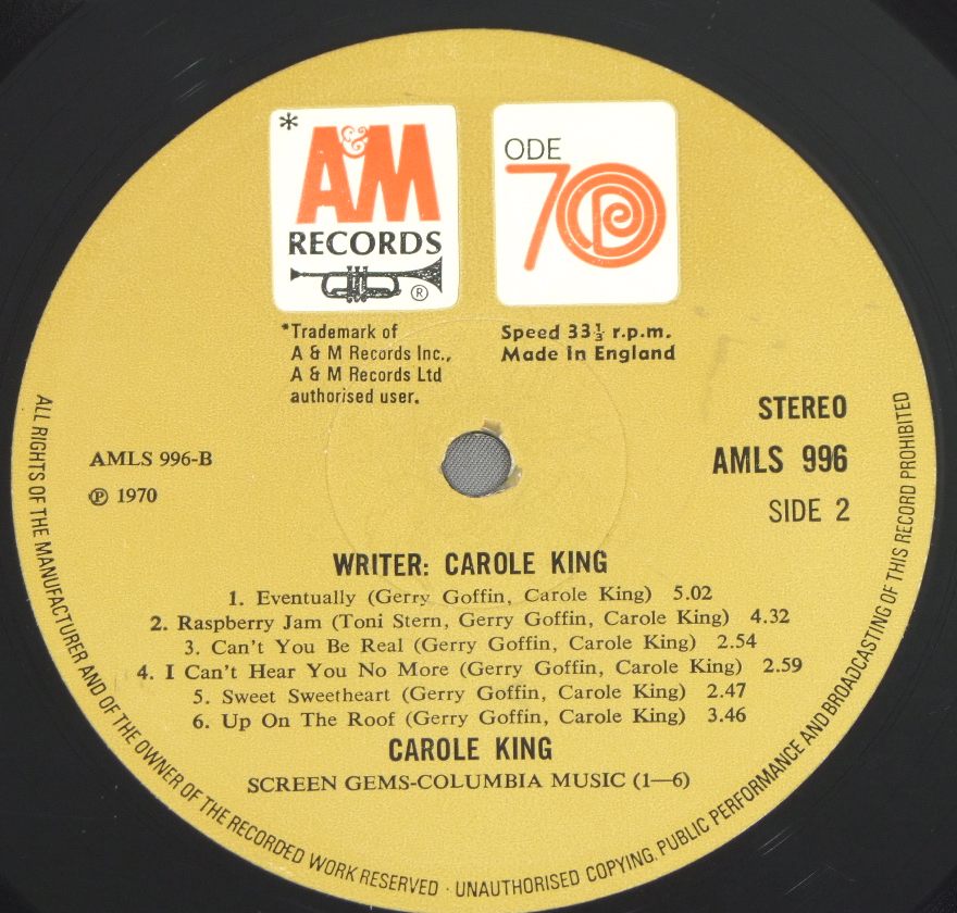 CAROLE KING/WRITER AMLS996 製造国:英国盤 / Media:LPMatrix:A-1*T | B-1*T外観:EX盤の状態:EX- 価格(税込):¥6,600(売約済) 送料 7inch:定形外郵便 360円~LP:定形外郵便 660円~送料は、注文の最終画面で確認頂けます。 > > CAROLE KING/WRITER 外観 (EX)特記事項:両面共厚手のコーティング仕様。表裏ジャケ共に背に沿ってコーティングの浮きと短いヨレシワ有り。コーティングのヨレシワはレコード取り出し口付近にも多少ありますが、全体的には少ない方だと思います。表ジャケに擦り傷が少しありますが、鈍い感じのものが中心。スレは薄い感じです。外観EXの共通説明:ダメージが限定的。中古品としては保存状態がよい方。シミ、ヨゴレ、スレ 少し~軽度。 盤の状態 (EX-)特記事項:薄いスリキズ・細かい表面スレ多少ある感じ。殆どが軽微なものの様子です。所々聴いてみましたが、後ろのほうでスクラッチ系の軽チリ。全体的にチリプチは軽度で音もしっかりなっています。盤EX-の共通説明:盤面のスリキズが多少有り。音に出そうなものは殆ど無いように見える~さほど気にならないぐらいの軽いプチ数カ所程度。 Tweet それぞれの画像をクリックすると、大きい写真が見られます こちらの商品もお勧めです 4,950円 JONI MITCHELL / DOG EAT DOG 4,400円 JONI MITCHELL / DOG EAT DOG 5,060円 JONI MITCHELL / CHALK MARK IN A RAIN STORM 4,950円 SANDY DENNY / RENDEZVOUS 7,700円 SUSAN MAUGHAN / I WANNA BE BOBBY`S GIRL 3,850円 NICO / THE END