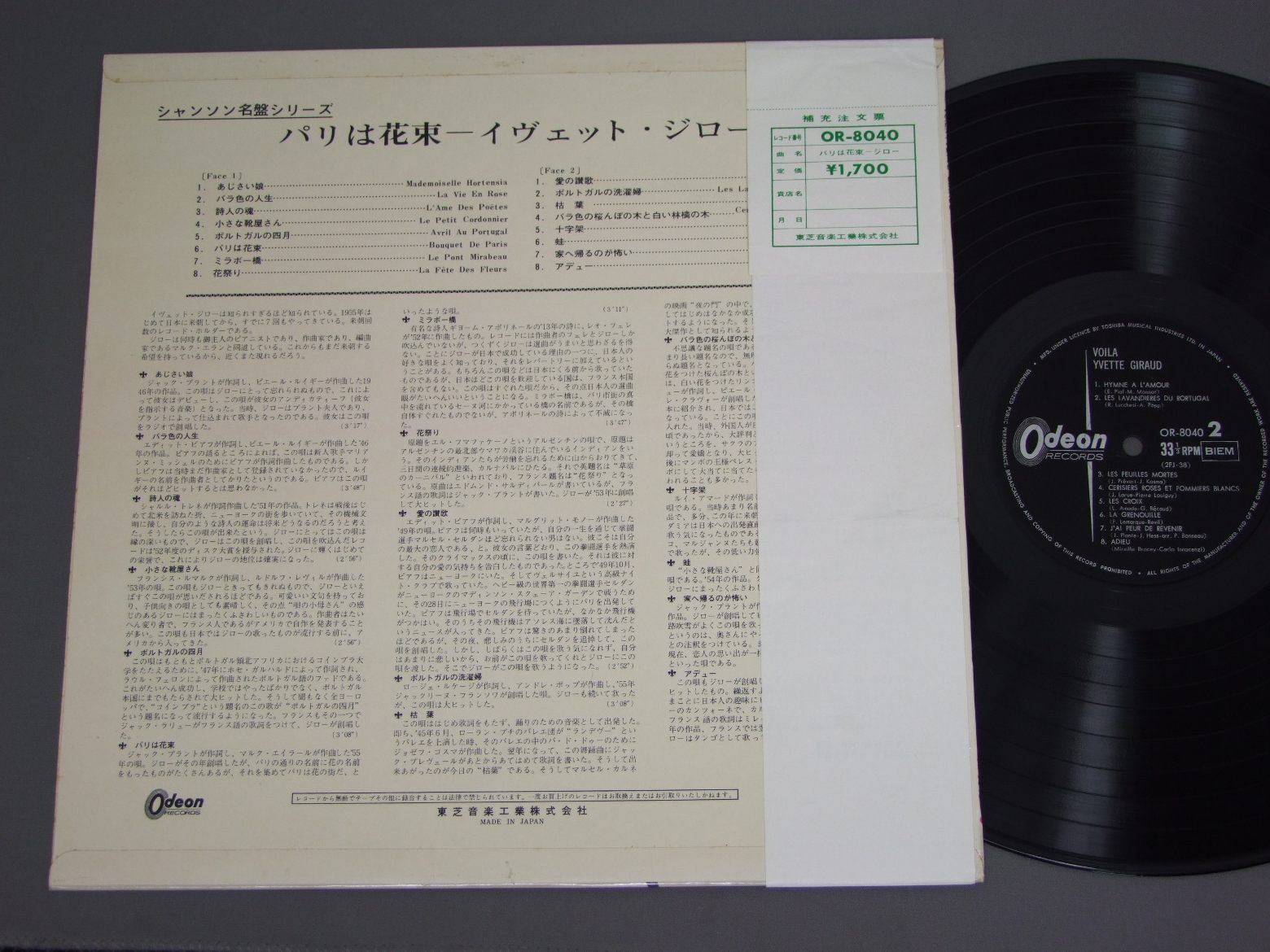YVETTE GIRAUDイヴェットジロー/YVETTE GIRAUDパリは花束 OR-8040 製造国:日本盤 / Media:LP外観:EX盤の状態:EX+帯:EX- 価格(税込):¥1,257(売約済) 送料 7inch:定形外郵便 360円~LP:定形外郵便 660円~送料は、注文の最終画面で確認頂けます。 > > YVETTE GIRAUD/YVETTE GIRAUD 外観 (EX)特記事項:特記無し。コンディションリストを参照下さい。外観EXの共通説明:ダメージが限定的。中古品としては保存状態がよい方。シミ、ヨゴレ、スレ 少し~軽度。 盤の状態 (EX+)特記事項:極薄いスリキズ・スレ少しだけ。一見してきれいな状態です。盤EX+の共通説明:盤面の極薄いスリキズ、スレ少し程度 音に出そうなものは無いように見える(極軽微なソフトティック音は除く)。 帯の状態 (EX-):ヨレや折れ多少有り。 Tweet それぞれの画像をクリックすると、大きい写真が見られます こちらの商品もお勧めです 1,210円 OLIVIA NEWTON-JOHNオリビア・ニュートンジョン / LET ME BE THEREレット・ミー・ビー・ゼア 770円 RITA COOLIDGEリタ・クーリッジ / SOUNDS CAPSULE 770円 OLIVIA NEWTON-JOHNオリビア・ニュートン・ジョン / LET ME BE THEREセカンド・アルバム 990円 KATE BUSHケイト・ブッシュ / NEVE FOR EVER魔物語 880円 DAMIAダミア / CHANSON BEST COLLECTION 1500 DAMIAシャンソン・ベスト・コレクション1500 ダミア-暗い日曜日 990円 CHERYL LADDシェリル・ラッド / TAKE A CHANCEテイク・ア・チャンス 990円 DANIELLE LICARIダニエル・リカーリ / DANIELLE LICARIふたりの天使・シェルブールの雨傘 770円 CORA VAUCAIREコラ・ヴォーケール / COMPLAINTE DE LA BUTTEモンマルトルの丘