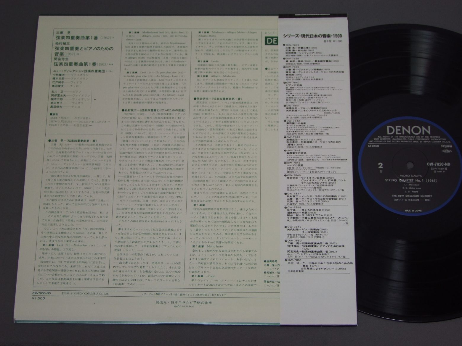 AKIRA MIYOSHI etc三善晃 間宮芳生他/STRING QUARTET弦楽四重奏曲 OW-7850-ND 製造国:日本盤 / Media:LP外観:EX+盤の状態:EX+帯:EX+ 価格(税込):¥2,420(売約済) 送料 7inch:定形外郵便 360円~LP:定形外郵便 660円~送料は、注文の最終画面で確認頂けます。 > > AKIRA MIYOSHI etc/STRING QUARTET 外観 (EX+)特記事項:特記無し。コンディションリストを参照下さい。外観EX+の共通説明:中古としては美品、一見してきれいでダメージが軽微。シミ、ヨゴレ、スレ有っても僅か~少し。 盤の状態 (EX+)特記事項:極薄いスリキズ・スレ少し。一見してきれいな状態です。盤EX+の共通説明:盤面の極薄いスリキズ、スレ少し程度 音に出そうなものは無いように見える(極軽微なソフトティック音は除く)。 帯の状態 (EX+):特記無し。コンディションリストを参照下さい。 Tweet それぞれの画像をクリックすると、大きい写真が見られます こちらの商品もお勧めです 990円 CHIKASHI TANAKA - KAORU CHIBA - REIKO HONSHO田中千香士 - 千葉馨 - 本荘玲子 / TERUYUKI NODA - TRIO POUR VIOLIN. COR ET PIANO野田暉行 - ヴァイオリン.ホルン.ピアノのための三重奏曲 1,650円 MEHTAメータ / ARCANA(MUSIC OF VARESE)アルカナ-ヴァレーズの音楽 990円 BOULEZブーレーズ / HOMAGE TO STRAVINSKYストラヴィンスキーへのオマージュ 1,430円 AULOS QUINTETアウロス五重奏団 / YOSHIRO IRINO/STRING SEXTET etc入野義朗/弦楽六重奏曲 他 1,650円 SHINYA KOIDE-RYU NOGUCHI-AKIO YASHIRO小出信也-野口龍-矢代秋雄 / AKIO YASHIRO-QUATUOR A CORDES-SONATE POUR PIANO-SONATE POUR 2 FLUTES ET PIANO矢代秋雄--ピアノ・ソナタ-2本のフルートとピアノのためのソナタ 1,980円 GRUENBERG - PEYERグルーエンベルク - ペイエ / MESSIAEN - QUATUOR POUR LA FIN DU TEMPSメシアン - 世の終りのための四重奏曲 1,540円 YOSHITAKA AKIMITSU秋満義孝 / MY MELANCHOLY BABYマイ・メランコリー・ベイビー 1,320円 SERGE BAUDOセルジュ・ボード / MESSIAEN-ET EXSPECIO MORTUORUM 1964 etc.メシアン-死者の復活を待ち望む 他