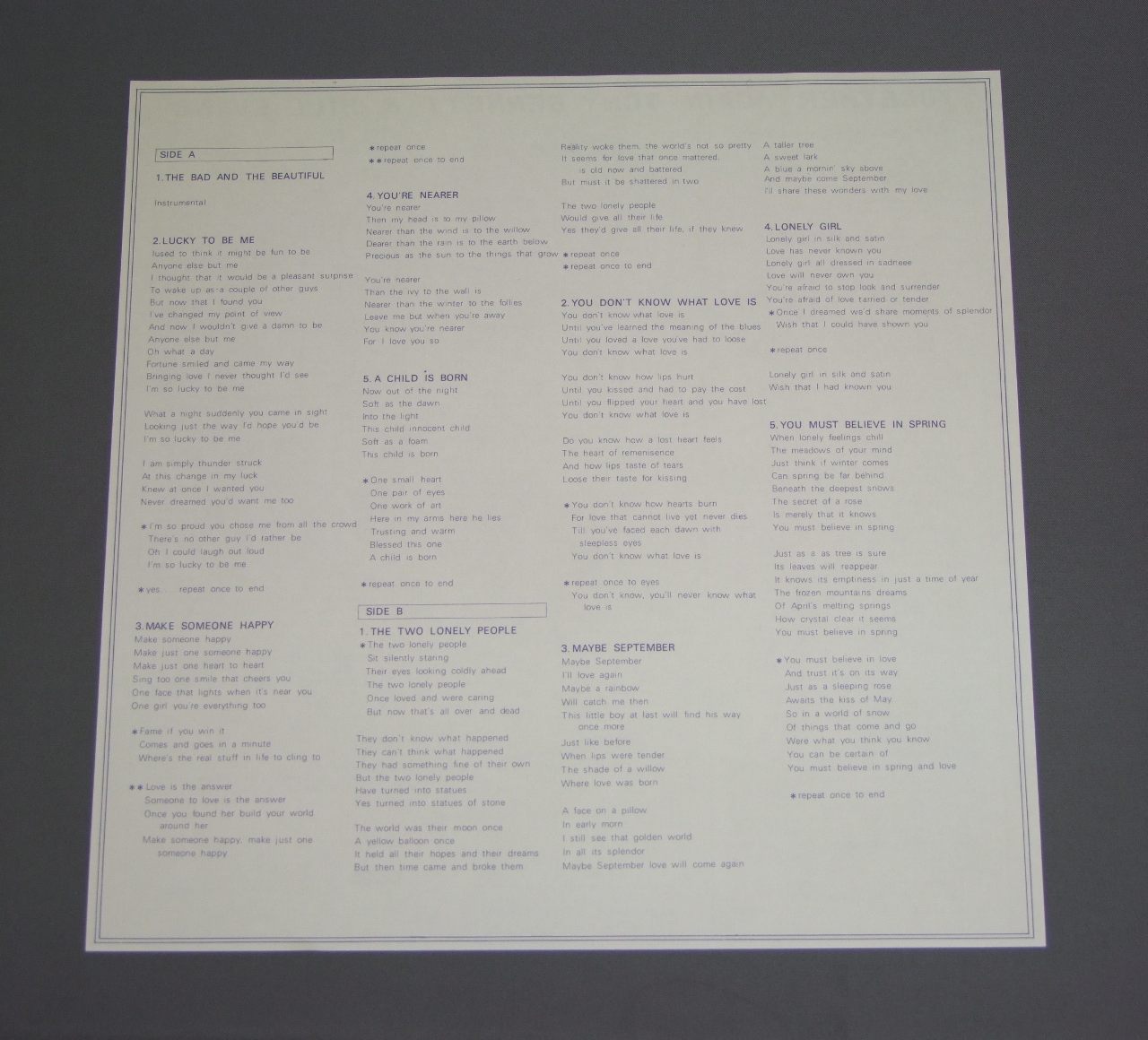 TONY BENNETT & BILL EVANS/TOGETHER AGAIN ULS-1679-VE 製造国:日本盤 / Media:LP外観:EX+盤の状態:EX+帯:EX+ 価格(税込):¥880(売約済) 送料 7inch:定形外郵便 360円~LP:定形外郵便 660円~送料は、注文の最終画面で確認頂けます。 > > TONY BENNETT & BILL EVANS/TOGETHER AGAIN 外観 (EX+)特記事項:上ヘリにスレが少々。外観EX+の共通説明:中古としては美品、一見してきれいでダメージが軽微。シミ、ヨゴレ、スレ有っても僅か~少し。 盤の状態 (EX+)特記事項:極薄いスリキズ・スレ少し。一見してきれいな状態です。盤EX+の共通説明:盤面の極薄いスリキズ、スレ少し程度 音に出そうなものは無いように見える(極軽微なソフトティック音は除く)。 帯の状態 (EX+):特記無し。コンディションリストを参照下さい。 Tweet それぞれの画像をクリックすると、大きい写真が見られます こちらの商品もお勧めです 1,210円 ERROLL GARNERエロール・ガーナー / CONCERT BY THE SEACONCERT BY THE SEA 1,210円 STUFFスタッフ / LIVE STUFFライヴ・スタッフ 990円 OSCAR PETERSON TRIOオスカー・ピーターソン・トリオ / IN TUNEイン・チューン 1,210円 THAD JONES & MEL LEWISサド・ジョーンズ&メル・ルイス・オーケストラ / POTPOURRIポプーリ 1,650円 KEITH JARRETTキース・ジャレット / FACING YOUフェイシング・ユー 1,320円 BUD POWELLバド・パウエル / BUD POWELL TRIOバド・パウエル トリオ 1,320円 HERBIE MANNハービー・マン楽団 / ST.THOMAS 60s ISSUEセント・トーマス ペラジャケ 1,210円 HERBIE MANNハービー・マン / GLORY OF LOVEグローリー・オブ・ラヴ