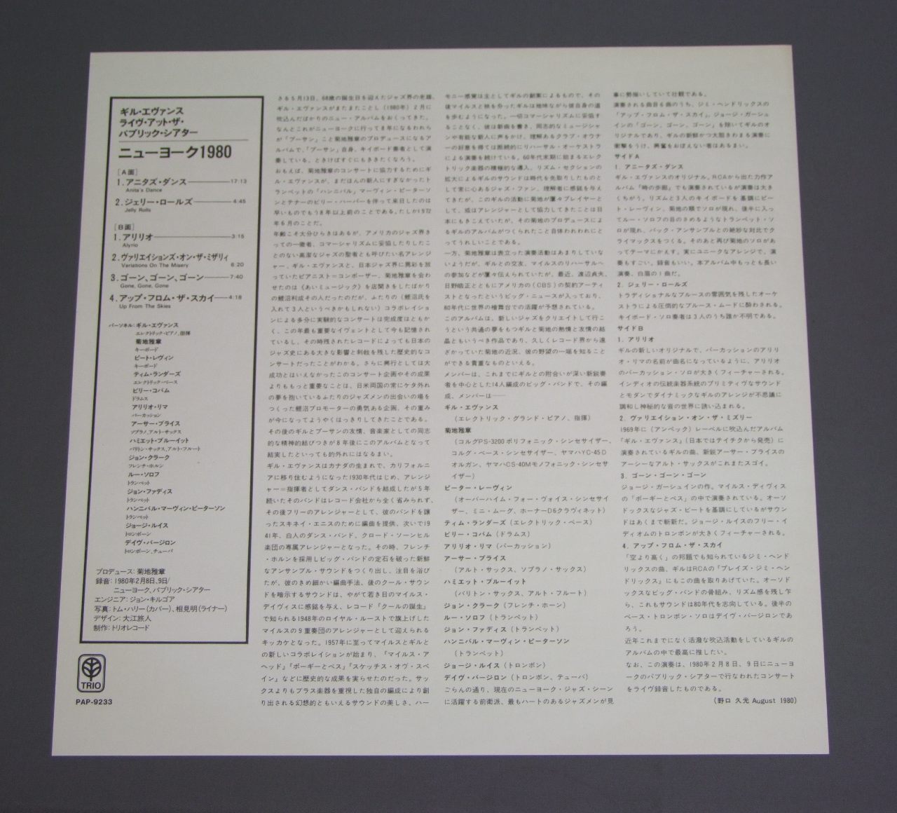 GIL EVANS/LIVE AT THE PUBLIC THEATER(NEW YORK 1980) PAP-9233 製造国:日本盤 / Media:LP外観:EX+盤の状態:EX+帯:EX+ 価格(税込):¥1,572(売約済) 送料 7inch:定形外郵便 360円~LP:定形外郵便 660円~送料は、注文の最終画面で確認頂けます。 レコード検索 > J-POP > GIL EVANS/LIVE AT THE PUBLIC THEATER(NEW YORK 1980) 外観 (EX+)特記事項:特記無し。コンディションリストを参照下さい。外観EX+の共通説明:中古としては美品、一見してきれいでダメージが軽微。シミ、ヨゴレ、スレ有っても僅か~少し。 盤の状態 (EX+)特記事項:極薄いスリキズ・スレ少し。一見してきれいな状態です。盤EX+の共通説明:盤面の極薄いスリキズ、スレ少し程度 音に出そうなものは無いように見える(極軽微なソフトティック音は除く)。 帯の状態 (EX+):特記無し。コンディションリストを参照下さい。 その他:※画像では確認できない、上下ヘリ、背表紙、取り出し口を中心に状態表記しております。画像で確認出来る表裏ジャケ、レーベルの状態表記は省いている場合がありますので、そちらの状態は画像でご確認をお願い致します。携帯の方は一度PC等で写真をご確認の上ご入札下さいますよう、お願い申し上げます。 Tweet それぞれの画像をクリックすると、大きい写真が見られます こちらの商品もお勧めです 990円 SHOJI SUZUKI & HIS RHYTHM ACES鈴木章治とリズム・エース / SUZUKAKE NO MICHI新・鈴懸の径 770円 EDDIE JEFFERSONエディ・ジェファーソン / LETTER FROM HOMEレター・フロム・ホーム 1,320円 SUPER JAZZ TRIOスーパー・ジャズ・トリオ / THE STANDARDザ・スタンダード 990円 SIDNEY DEPARIS etc / COMMODORE SHOW CASEコモドア・ショーケース 990円 CHARLIE PARKERチャーリー・パーカー / CHARLIE PARKER ON SAVOY VOL6チャーリー・パーカー・オン・サヴォイVOL6 1,210円 FLETCHER HENDERSON & HIS ORCHESTRAフレッチャー・ヘンダーソン / FIRST IMPRESSIONS VOL1 (1924-1931)ファースト・インプレッションズ VOL1 (1924-1931) 770円 LOUIS ARMSTRONG & THE ALL-STARSルイ・アームストロングとオール・スターズ / SATCHMO ALL-STARS IN 1950サッチモ・オール・スターズ・イン 1950 770円 NEW ORLEANS RASCALSニューオリンズ・ラスカルズ / 20th ANNIVERSARY CONCERT20th アニバーサリー・コンサート