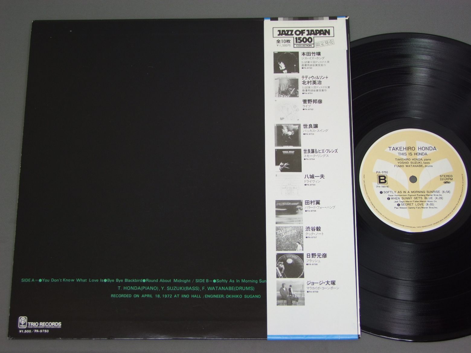 本田竹広/THIS IS HONDA再発盤 PA-9750 製造国:日本盤 / Media:LP外観:EX盤の状態:EX+帯:EX+ 価格(税込):¥1,100(売約済) 送料 7inch:定形外郵便 360円~LP:定形外郵便 660円~送料は、注文の最終画面で確認頂けます。 > > /THIS IS HONDA 外観 (EX)特記事項:裏ジャケ側にスリキズ多少有り。僅かに底スレ有り。外観EXの共通説明:ダメージが限定的。中古品としては保存状態がよい方。シミ、ヨゴレ、スレ 少し~軽度。 盤の状態 (EX+)特記事項:極薄いスリキズ・スレ少し。一見してきれいな状態です。曲間など、静かなところを中心に聴いてみましたが、チリノイズ少ないきれいな再生具合でした。盤EX+の共通説明:盤面の極薄いスリキズ、スレ少し程度 音に出そうなものは無いように見える(極軽微なソフトティック音は除く)。 帯の状態 (EX+):特記無し。コンディションリストを参照下さい。 その他:※画像では確認できない、上下ヘリ、背表紙、取り出し口を中心に状態表記しております。画像で確認出来る表裏ジャケ、レーベルの状態表記は省いている場合がありますので、そちらの状態は画像でご確認をお願い致します。携帯の方は一度PC等で写真をご確認の上ご入札下さいますよう、お願い申し上げます。 Tweet それぞれの画像をクリックすると、大きい写真が見られます こちらの商品もお勧めです 770円 RICHARD RODNEY BENNETTリチャード・ロドニー・ベネット / I GOT RHYTHMアイ・ゴット・リズム 770円 NEW ORLEANS RASCALSニューオリンズ・ラスカルズ / 20th ANNIVERSARY CONCERT20th アニバーサリー・コンサート 1,210円 ERIC DOLPHYエリック・ドルフィー / LAST DATEラスト・レコーディング 770円 NORIO MAEDA前田憲男 / FEELINGSフィーリング 770円 TEDDY WILSONテディ・ウイルソン / NOBLE ART OF TEDDY WILSONノーブル・アート・オブ・テディ・ウイルソン 880円 HARRIS SIMON GROUPハリス・サイモン・グループ / NEW YORK CONNECTIONニューヨーク・コネクション 770円 MATT DENNIS & RED NORVOマット・デニス & レッド・ノーヴォ / SOME OF MY FAVORITESサム・オブ・マイ・フェイバリッツ 660円 JACQUES LOUSSIERジャック・ルーシェ / PLAY BACHプレイ・バッハ
