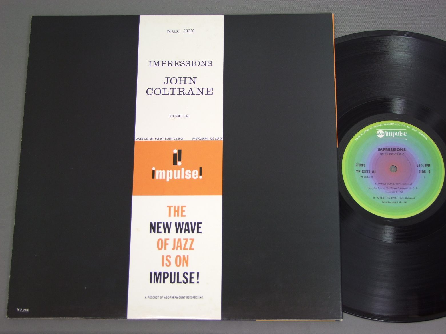 JOHN COLTRANEジョン・コルトレーン/IMPRESSIONSインプレッションズ YP-8522-AI 製造国:日本盤 / Media:LP外観:EX-盤の状態:EX+帯:EX 価格(税込):¥1,100(売約済) 送料 7inch:定形外郵便 360円~LP:定形外郵便 660円~送料は、注文の最終画面で確認頂けます。 > > JOHN COLTRANE/IMPRESSIONS 外観 (EX-)特記事項:見開きにシミ有り。外観EX-の共通説明:ダメージ軽度~多少。 中古品としては普通の状態。シミ、ヨゴレ、スレなど軽く~多少。 盤の状態 (EX+)特記事項:極薄いスリキズ・スレ少し。一見してきれいな状態です。曲間など、静かなところを中心に聴いてみましたが、チリノイズ少ないきれいな再生具合でした。盤EX+の共通説明:盤面の極薄いスリキズ、スレ少し程度 音に出そうなものは無いように見える(極軽微なソフトティック音は除く)。 帯の状態 (EX):裏側にシミ。 Tweet それぞれの画像をクリックすると、大きい写真が見られます こちらの商品もお勧めです 1,210円 ERIC DOLPHYエリック・ドルフィー / LAST DATEラスト・レコーディング 1,210円 JOHN MEHEGAN & EDDIE COSTAジョン・ミーガン&エディ・コスタ / PAIR OF PIANOSペア・オブ・ピアノ 770円 VARIOUS ARTISTSエドモンド・ホール他 / 52nd STREET SESSIONS52番街セッションズ 1,210円 CLARKE BOLAND BIG BAND / SAME TITEL 1,320円 LOUIS ARMSTRONG & HIS ALL-STARSルイ・アームストロング・オールスターズ / PLAYS W.C.HANDYプレイズ・W.C.ハンディ 1,320円 GERY PEACOCKゲーリー・ピーコック / TALES OF ANOTHERTALES OF ANOTHER 1,320円 GREAT JAZZ TRIOグレート・ジャズ・トリオ / AT THE VILLAGE VANGUARD VOL2アット・ザ・ヴィレッジ・ヴァンガードVOL2 1,210円 ESQUIRE ALL STARS etc / FLYIN` ON A V-DISC (V-DISC ALL STAR JAZZ SESSIONS VOL2)フライン・オン・ア・Vディスク (Vディスク・オールスターズ第2集)