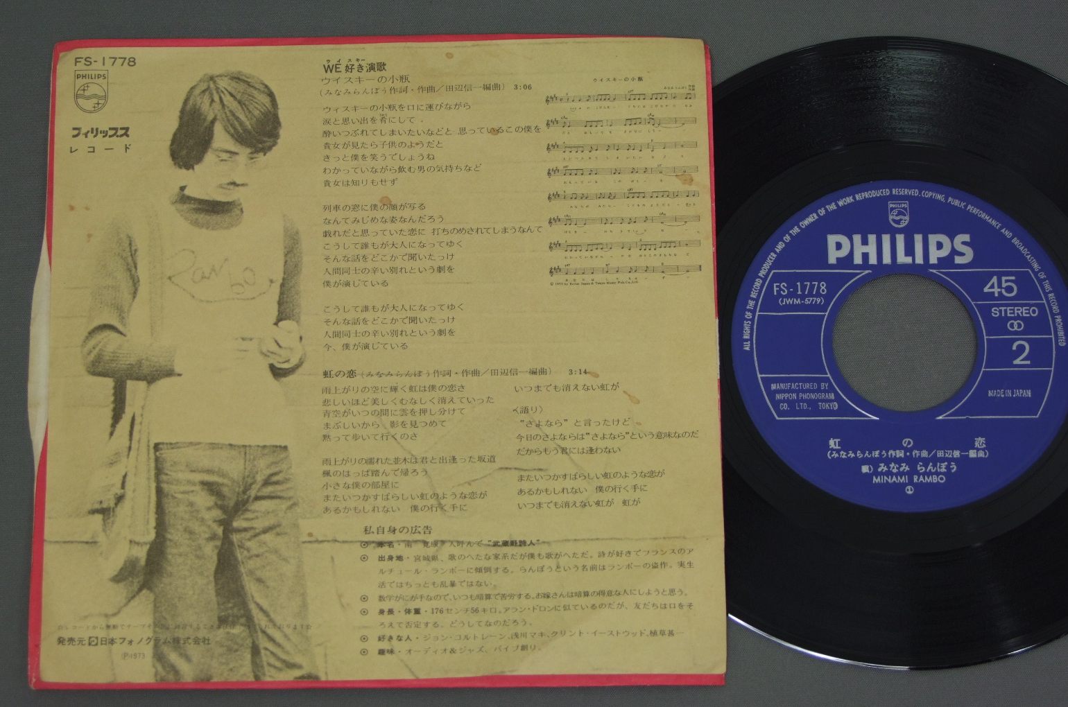 MINAMI RANBOみなみらんぼう/ ウイスキーの小瓶 FS-1778 製造国:日本盤 / Media:7inch外観:EX-盤の状態:EX- 価格(税込):¥330(売約済) 送料 7inch:定形外郵便 360円~LP:定形外郵便 660円~送料は、注文の最終画面で確認頂けます。 > > MINAMI RANBO/ 外観 (EX-)特記事項:表裏ジャケ共にシミが少し。外観EX-の共通説明:ダメージ軽度~多少。 中古品としては普通の状態。シミ、ヨゴレ、スレなど軽く~多少。 盤の状態 (EX-)特記事項:薄いスリキズ・細かい表面スレ軽くある感じ。全体的には殆どが軽微なものの様子です。盤EX-の共通説明:盤面のスリキズが多少有り。音に出そうなものは殆ど無いように見える~さほど気にならないぐらいの軽いプチ数カ所程度。 Tweet それぞれの画像をクリックすると、大きい写真が見られます こちらの商品もお勧めです 880円 TETSUO SAITOH斉藤哲夫 / BYE BYE GOODBYEバイバイグッドバイサラバイ 1,650円 5 BALLOONS五つの赤い風船 / FAIRLY TALEおとぎばなし 1,980円 FURIDO古井戸 / POESYぽえじー(3rd ALBUM) 1,210円 SUMIKO YAMAGATA山県すみ子 / SUMIKO ALBUM VOL5オルゴール 2,200円 71 ALL JAPAN FOLK JAMBOREE岡林信康・五つの赤い風船 / LIVE VOL271年全日本フォーク・ジャンボリーVOL2 2,200円 ITSUTSUNO AKAI FUSEN五つの赤い風船 / FOLK ALBUM VOL2フォーク・アルバム 第2集 1,650円 ITSUTSUNO AKAI FUSEN五つの赤い風船 / FOLK ALBUM NO1フォーク・アルバム第1集 770円 HITOSHI KOMURO-TAKURO YOSHIDA etc小室等-吉田拓郎 他 / CHRISTMAS