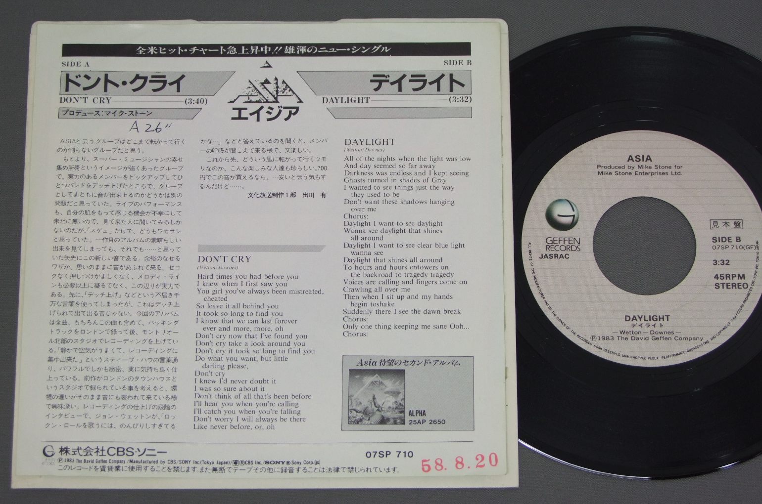 ASIAエイジア/DON`T CRYドント・クライ 07SP 710 製造国:日本盤 / Media:7inch外観:EX盤の状態:EX+ 価格(税込):¥524(売約済) 送料 7inch:定形外郵便 360円~LP:定形外郵便 660円~送料は、注文の最終画面で確認頂けます。 > > ASIA/DON`T CRY 外観 (EX)特記事項:特記無し。コンディションリストを参照下さい。外観EXの共通説明:ダメージが限定的。中古品としては保存状態がよい方。シミ、ヨゴレ、スレ 少し~軽度。 盤の状態 (EX+)特記事項:極薄いスリキズ・スレ少し。一見してきれいな状態です。盤EX+の共通説明:盤面の極薄いスリキズ、スレ少し程度 音に出そうなものは無いように見える(極軽微なソフトティック音は除く)。 その他:見本盤※画像では確認できない、上下ヘリ、背表紙、取り出し口を中心に状態表記しております。画像で確認出来る表裏ジャケ、レーベルの状態表記は省いている場合がありますので、そちらの状態は画像でご確認をお願い致します。携帯の方は一度PC等で写真をご確認の上ご入札下さいますよう、お願い申し上げます。 Tweet それぞれの画像をクリックすると、大きい写真が見られます こちらの商品もお勧めです 1,210円 RICK WAKEMANリック・ウェイクマン / JOURNEY TO THE CENTER OF THE EARTH地底探検 ライブ 770円 ASIAエイジア / 1st ALBUM詠時感(エイジア) 770円 ASIAエイジア / ALFHAアルファ 1,210円 VANGELISヴァンゲリス / ALBEDO 039反射率 039 770円 RICK WAKEMANリック・ウェイクマン / MYTHS AND LEGENDS OF KING ARTHUR AND THE KNIGHTS OF THE ROUND TABLEアーサー王と円卓の騎士たち 990円 UKUK / UK憂国の四士 2,750円 MAGNA CARTA / PUTTING IT BACK TOGETHER 1,210円 RICK WAKEMAN - THE LONDON SYMPHONY ORCHESTRAリック・ウェイクマン - ロンドン交響楽団 / JOURNY TO THE CENTER OF THE EARTH地底探検