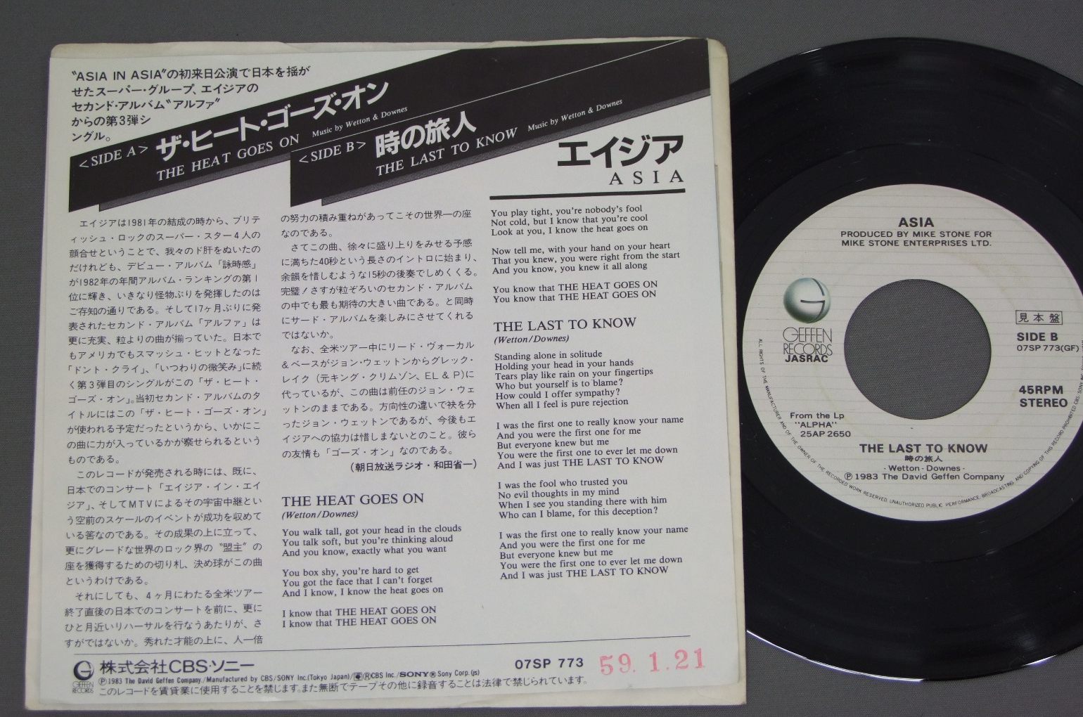ASIAエイジア/HEAT GOES ONザ・ヒート・ゴーズ・オン 07SP 773 製造国:日本盤 / Media:7inch外観:EX盤の状態:EX+ 価格(税込):¥880(売約済) 送料 7inch:定形外郵便 360円~LP:定形外郵便 660円~送料は、注文の最終画面で確認頂けます。 > > ASIA/HEAT GOES ON 外観 (EX)特記事項:特記無し。コンディションリストを参照下さい。外観EXの共通説明:ダメージが限定的。中古品としては保存状態がよい方。シミ、ヨゴレ、スレ 少し~軽度。 盤の状態 (EX+)特記事項:極薄いスリキズ・スレ少し。一見してきれいな状態です。盤EX+の共通説明:盤面の極薄いスリキズ、スレ少し程度 音に出そうなものは無いように見える(極軽微なソフトティック音は除く)。 その他:見本盤 Tweet それぞれの画像をクリックすると、大きい写真が見られます こちらの商品もお勧めです 770円 RICK WAKEMANリック・ウェイクマン / MYTHS AND LEGENDS OF KING ARTHUR AND THE KNIGHTS OF THE ROUND TABLEアーサー王と円卓の騎士たち 770円 MIKE OLDFIELDマイク・オールドフィールド / KILLING FIELDSキリング・フィールド 880円 ASIAエイジア / ALPHAアルファ 1,210円 RICK WAKEMAN - THE LONDON SYMPHONY ORCHESTRAリック・ウェイクマン - ロンドン交響楽団 / JOURNY TO THE CENTER OF THE EARTH地底探検 990円 EMERSON LAKE & PALMERエマーソン・レイク & パーマー / WORKS VOL 1ELP四部作 880円 RICK WAKEMANリック・ウェイクマン / JOURNEY TO THE CENTRE OF THE EARTH地底探検 1,320円 ASIAエイジア / ASIA詠時感 1,210円 VANGELISヴァンゲリス / ALBEDO 039反射率 039