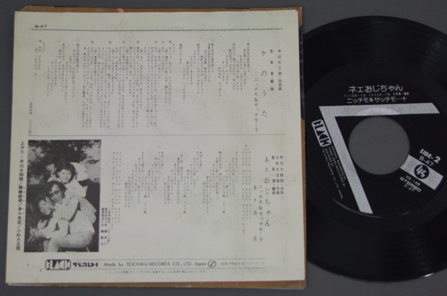 ニッチモ&サッチモ/ケのうた B-47 製造国:日本盤 / Media:7inch外観:EX盤の状態:EX 価格(税込):¥660(売約済) 送料 7inch:定形外郵便 360円~LP:定形外郵便 660円~送料は、注文の最終画面で確認頂けます。 > > / 外観 (EX)特記事項:右下にホッチキス穴外観EXの共通説明:ダメージが限定的。中古品としては保存状態がよい方。シミ、ヨゴレ、スレ 少し~軽度。 盤の状態 (EX)特記事項:薄いスリキズ・スレ軽くある感じ。一見してきれいな印象です。盤EXの共通説明:盤面のスリキズが薄いものが少し~軽度 音に出そうなものは無いように見える(軽微なソフトティック音は除く)。 その他:※画像では確認できない、上下ヘリ、背表紙、取り出し口を中心に状態表記しております。画像で確認出来る表裏ジャケ、レーベルの状態表記は省いている場合がありますので、そちらの状態は画像でご確認をお願い致します。携帯の方は一度PC等で写真をご確認の上ご入札下さいますよう、お願い申し上げます。 Tweet それぞれの画像をクリックすると、大きい写真が見られます こちらの商品もお勧めです 880円 TULIPチューリップ / LOVE MAP SHOPラヴ・マップ・ショップ 990円 DR. RIVERBEACH & HIS ORCHESTRA / GOOD-BYE SONG BOOK 770円 GO OHGAMI大神剛 / SLEEPING THE TOWN 660円 MASAMICHI SUGI杉真理 / MISTONEミストーン 770円 VARIOUS JAPANESE POPSキング・レコード邦楽 / NOW HIT NOW ( NOW - サルビアの花)ナウ・ヒット・ナウ ( NOW - サルビアの花 収録) 770円 KOJI KIKKAWA吉川晃司 / INNOCENT SKYイノセント スカイ 770円 HAJIME TACHIBANA立花はじめ / MR. TECHIE & MISS KIPPLE 2,200円 TERUHIKO SAIGO西郷輝彦 / HIT PARADOヒット・パレード 君だけを
