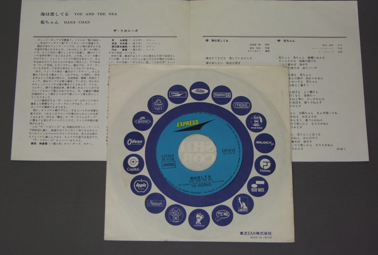 THE RIGANNIESザ・リガニーズ/YOU AND THE SEA海は恋してる ETP-2712 製造国:日本盤 / Media:7inch外観:EX盤の状態:EX 価格(税込):¥990 送料 7inch:定形外郵便 360円~LP:定形外郵便 660円~送料は、注文の最終画面で確認頂けます。 > > THE RIGANNIES/YOU AND THE SEA 外観 (EX)特記事項:見開き背付近に日焼けシミ。外観EXの共通説明:ダメージが限定的。中古品としては保存状態がよい方。シミ、ヨゴレ、スレ 少し~軽度。 盤の状態 (EX)特記事項:薄いスリキズ・スレ軽くある感じ。一見してきれいな印象です。盤EXの共通説明:盤面のスリキズが薄いものが少し~軽度 音に出そうなものは無いように見える(軽微なソフトティック音は除く)。 Tweet それぞれの画像をクリックすると、大きい写真が見られます こちらの商品もお勧めです 1,210円 TIGERSタイガース / TIGERS 1982十年ロマンス 1,320円 TAKESHI TERAUCHI & BLUEJEANS寺内タケシとブルー・ジーンズ / ELECTRIC GUITAR SONGS WITHOUT SONG歌のないエレキ歌謡曲 3,850円 OXオックス / FIRST ALBUMファースト・アルバム 1,210円 WILD ONES加瀬邦彦とワイルドワンズ / ON THE BEACH`82オン・ザ・ビーチ`82 550円 TAKESHI TERAUCHI & THE BUNNYS寺内タケシとバニーズ / LET`S GO CLASSICSレッツ・ゴー運命 1,650円 MUNETAKA INOUE & HIS SHARP FIVE井上宗孝とシャープ・ファイヴ / SHARP FIVE SCREEN GO GOシャープ・ファイヴ・スクリーン・ゴーゴー 550円 TIGERSタイガース / 10 YEARS ROMANCE十年ロマンス 770円 YUZO KAYAMA加山雄三 / GOLDEN ALBUMゴールデン・アルバム(あなたと共に)赤盤