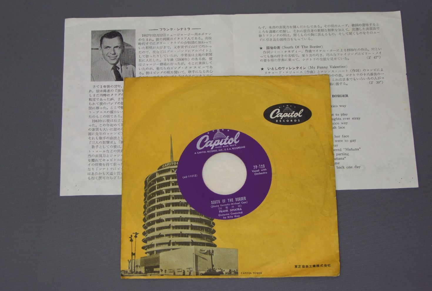 FRANK SINATRAフランク・シナトラ/SOUTH OF THE BORDER国境の南 7P-123 製造国:日本盤 / Media:7inch外観:EX盤の状態:EX- 価格(税込):¥880(売約済) 送料 7inch:定形外郵便 360円~LP:定形外郵便 660円~送料は、注文の最終画面で確認頂けます。 > > FRANK SINATRA/SOUTH OF THE BORDER 外観 (EX)特記事項:右下にホッチキス穴。見開きや裏側にシミが少し。外観EXの共通説明:ダメージが限定的。中古品としては保存状態がよい方。シミ、ヨゴレ、スレ 少し~軽度。 盤の状態 (EX-)特記事項:薄いスリキズ・細かい表面スレ軽くある感じ。全体的には殆どが軽微なものの様子です。盤EX-の共通説明:盤面のスリキズが多少有り。音に出そうなものは殆ど無いように見える~さほど気にならないぐらいの軽いプチ数カ所程度。 その他:※画像では確認できない、上下ヘリ、背表紙、取り出し口を中心に状態表記しております。画像で確認出来る表裏ジャケ、レーベルの状態表記は省いている場合がありますので、そちらの状態は画像でご確認をお願い致します。携帯の方は一度PC等で写真をご確認の上ご入札下さいますよう、お願い申し上げます。 Tweet それぞれの画像をクリックすると、大きい写真が見られます こちらの商品もお勧めです 1,650円 DOLLAR BRANDダラー・ブランド / AFRICAN PIANOアフリカン・ピアノ 1,210円 WILLIE SMITH - JESS STACY - JOE SULLIVANジェス・ステイシー - ウィリイ・スミス - ジョー・サリバン / CHAIRMEN OF THE BOARD VOL2ピアノ・ジャズの競演 第2集 1,320円 BUD POWELLバド・パウエル / BUD POWELL TRIOバド・パウエル トリオ 880円 V-DISC ALL-STAR JAM SESSIONSVディスク・オールスター・ジャムセッション / V-DISC ALL-STAR JAM SESSIONSVディスク・オールスター・ジャムセッション VOL.5 1,980円 EIJI KITAMURA北村英治 / APRIL DATE ( MASTER SOUND PRESSING )エイプリル・デイト (マスターサウンド盤) 1,650円 ALBERT AYLERアルバート・アイラー / VOLUME 1ラスト・レコーディング VOL1 1,320円 JACKIE McLEAN QUINTETジャッキー・マクリーン・クインテット / JACKIE McLEAN QUINTETJACIE McLEAN QUINTET 990円 CHARLIE PARKERチャーリー・パーカー / CHARLIE PARKER ON SAVOY VOL6チャーリー・パーカー・オン・サヴォイVOL6