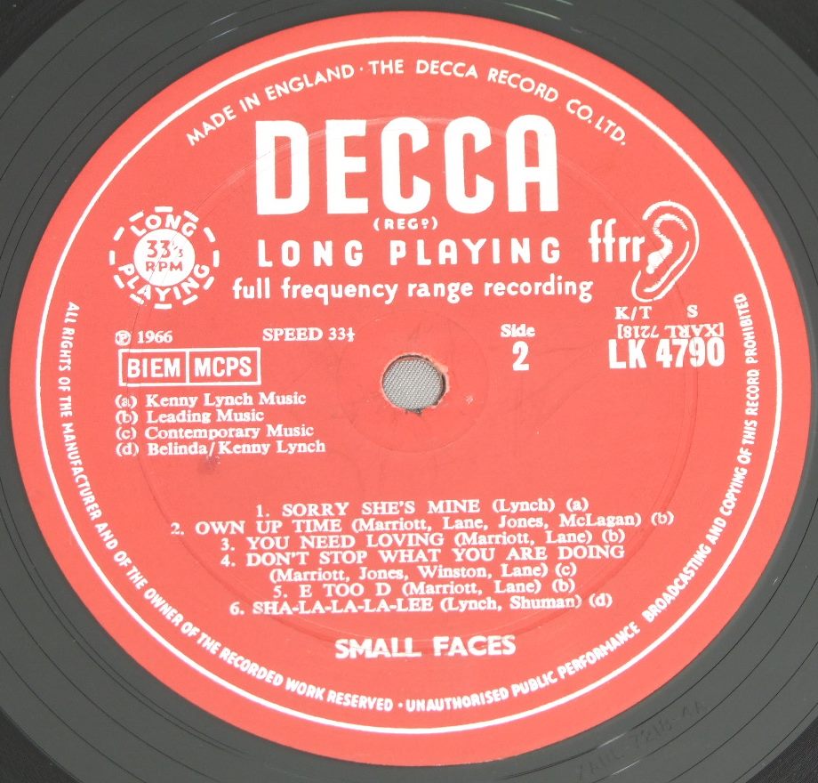 SMALL FACES/DECCA 1st ALBUM LK4790 製造国:英国盤 / Media:LPMatrix:4A / 1 / I | 4A / 1 / H外観:EX-盤の状態:EX 価格(税込):¥18,700(売約済) 送料 7inch:定形外郵便 360円~LP:定形外郵便 660円~送料は、注文の最終画面で確認頂けます。 > > SMALL FACES/DECCA 1st ALBUM 外観 (EX-)特記事項:背にヨレシワが少し。背中央に小さなコーティングの剥がれ有り。表ジャケはレコード取り出し口付近にヨレ多少有り。一部コーティングの剥がれている箇所も有ります。また、レコード取り出し口下で短い切れ有り。ジャケ表面は全体的にはコーティングのヨレシワは少ない印象。スレやスリキズ等も薄い感じです。裏ジャケ側は多少薄いよごれ有り。外観EX-の共通説明:ダメージ軽度~多少。 中古品としては普通の状態。シミ、ヨゴレ、スレなど軽く~多少。 盤の状態 (EX)特記事項:薄いスリキズ・スレ等、軽くある感じ。モノ針なら影響無さそうな軽微なものの様子で、一見して中々きれいな印象です。曲間など、静かなところを中心にモノ針で聴いて見ましたが、チリノイズ少ない綺麗な再生具合でした。盤EXの共通説明:盤面のスリキズが薄いものが少し~軽度 音に出そうなものは無いように見える(軽微なソフトティック音は除く)。 Tweet それぞれの画像をクリックすると、大きい写真が見られます こちらの商品もお勧めです 11,000円 CLIFF BENNETT AND HIS BAND / CLIFF BENETT BRANCHES OUT 6,600円 SOUNDS INCORPORATED / SOUNDS INCORPORATED MONO 5,500円 GEORGE FAME / HALL OF FAME 3,080円 JOHN`S CHILDREN / JAGGED TIME LAPSE ( RARE AND UNRELEASE ) 8,800円 GEORGIE FAME / HALL OF FAME 16,500円 TEE-SET / MA BELLE AMIE ( 1st ALBUM ) 9,900円 FOUR PENNIES / 2 SIDE OF 4 PENNIES 6,600円 GEORGIE FAME / TWO FACES OF FAME