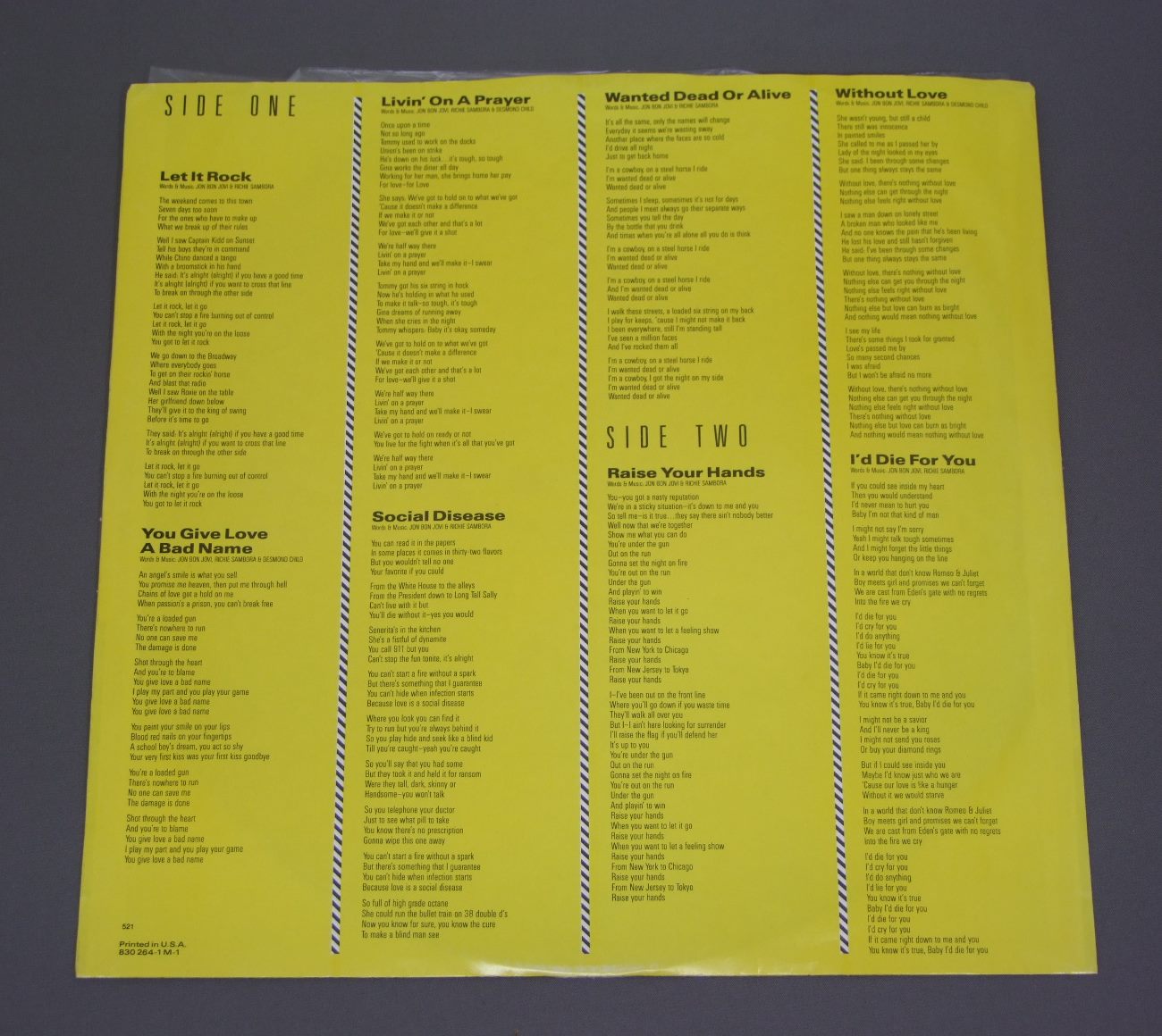 BON JOVI/SLIPPERY WHEN WET 830 2641 M1 製造国:米国盤 / Media:LP外観:EX+盤の状態:EX 価格(税込):¥943(売約済) 送料 7inch:定形外郵便 360円~LP:定形外郵便 660円~送料は、注文の最終画面で確認頂けます。 > > BON JOVI/SLIPPERY WHEN WET 外観 (EX+)特記事項:インナーは底と両サイドで抜け有り。外観EX+の共通説明:中古としては美品、一見してきれいでダメージが軽微。シミ、ヨゴレ、スレ有っても僅か~少し。 盤の状態 (EX)特記事項:薄いスリキズ・スレ軽くある感じ。軽微なものの様子です。盤EXの共通説明:盤面のスリキズが薄いものが少し~軽度 音に出そうなものは無いように見える(軽微なソフトティック音は除く)。 その他:※画像では確認できない、上下ヘリ、背表紙、取り出し口を中心に状態表記しております。画像で確認出来る表裏ジャケ、レーベルの状態表記は省いている場合がありますので、そちらの状態は画像でご確認をお願い致します。携帯の方は一度PC等で写真をご確認の上ご入札下さいますよう、お願い申し上げます。 Tweet それぞれの画像をクリックすると、大きい写真が見られます こちらの商品もお勧めです 1,650円 IN/HUMANITY / HISTRORY BEHINED THE MYSTERY 1,650円 HELIX / NO REST FOR THE WICKED 880円 SAMMY HAGAR / SAMMY HAGAR 1,100円 ARASKA / HEART OF THE STORM 770円 707 / MEGA FORCE7 1,540円 SAMSON / SURVIVORS 770円 SCHON & HAMMER / HERE TO STAY 1,650円 HEAVEN / HEAVEN