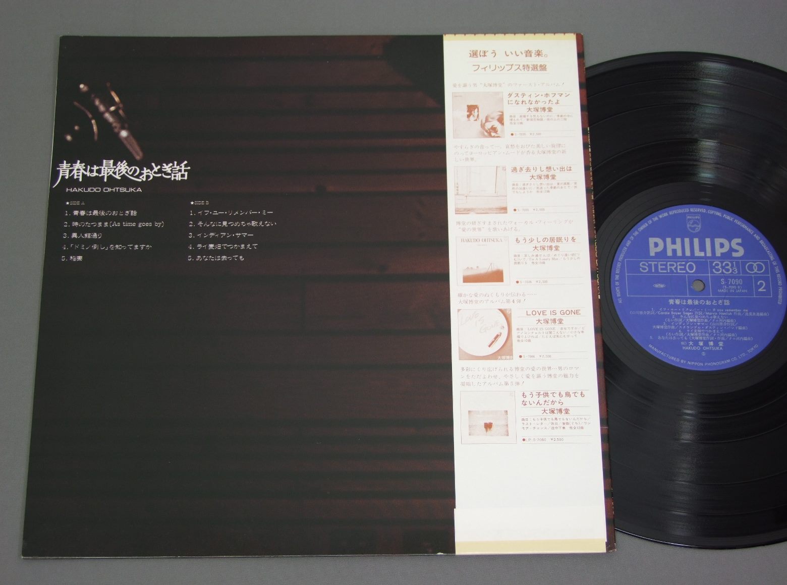 大塚博堂/青春は最後のおとぎ話 S7090 製造国:日本盤 / Media:LP外観:EX+盤の状態:EX帯:EX+ 価格(税込):¥1,257(売約済) 送料 7inch:定形外郵便 360円~LP:定形外郵便 660円~送料は、注文の最終画面で確認頂けます。 > > / 外観 (EX+)特記事項:歌詞カードにヨレ有り。外観EX+の共通説明:中古としては美品、一見してきれいでダメージが軽微。シミ、ヨゴレ、スレ有っても僅か~少し。 盤の状態 (EX)特記事項:薄いスリキズ・スレ軽くある感じ。軽微なものの様子です。盤EXの共通説明:盤面のスリキズが薄いものが少し~軽度 音に出そうなものは無いように見える(軽微なソフトティック音は除く)。 帯の状態 (EX+):特記無し。コンディションリストを参照下さい。 その他:※画像では確認できない、上下ヘリ、背表紙、取り出し口を中心に状態表記しております。画像で確認出来る表裏ジャケ、レーベルの状態表記は省いている場合がありますので、そちらの状態は画像でご確認をお願い致します。携帯の方は一度PC等で写真をご確認の上ご入札下さいますよう、お願い申し上げます。 Tweet それぞれの画像をクリックすると、大きい写真が見られます こちらの商品もお勧めです 770円 HITOSHI KOMURO-TAKURO YOSHIDA etc小室等-吉田拓郎 他 / CHRISTMAS 770円 KATSUYUKI MIYAZAWA宮沢勝之 / LIVE IN KIYOSE 81 AUTOGRAPHED陽気に生きようこの人生をさ LIVE IN 清瀬 サイン付 1,980円 TAKURO YOSHIDA吉田拓郎 / SEISHUN-NO UTA青春の詩 1,210円 SUMIKO YAMAGATAやまがたすみこ / SUMIKO LIVE 1,320円 TAKUROU YOSHIDA吉田拓郎 / ON STAGEオン・ステージ 1,760円 FIVE BALLOONS五つの赤い風船 / 1st ALBUMフォーク・アルバム 第1集 1,210円 HAKUDO OHTSUKA大塚博堂 / 過ぎ去りし想い出は 770円 IRUKAイルカ / NOEL`S FANTASTIC TRIPノエルの不思議な冒険