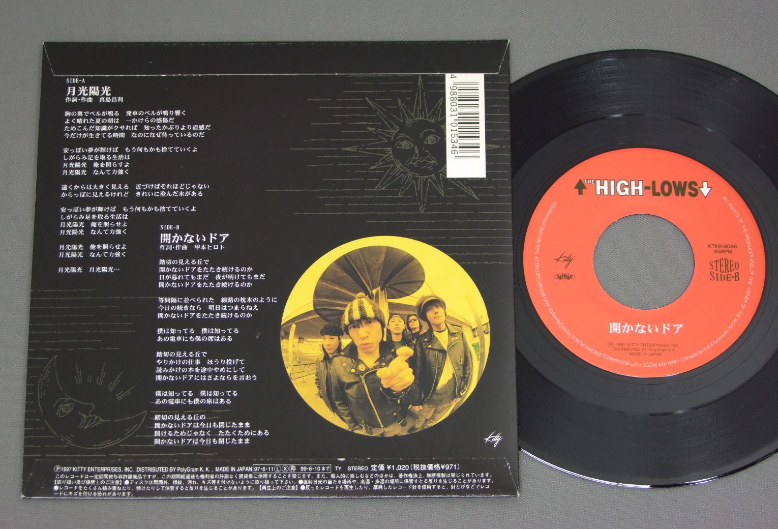HIGH-LOWS/月光陽光 KTKR9046 製造国:日本盤 / Media:7inch外観:EX盤の状態:EX+ 価格(税込):¥1,257(売約済) 送料 7inch:定形外郵便 360円~LP:定形外郵便 660円~送料は、注文の最終画面で確認頂けます。 > > HIGH-LOWS/ 外観 (EX)特記事項:底スレが少し。外観EXの共通説明:ダメージが限定的。中古品としては保存状態がよい方。シミ、ヨゴレ、スレ 少し~軽度。 盤の状態 (EX+)特記事項:極薄いスリキズ・スレ少しだけ。一見してきれいな状態です。盤EX+の共通説明:盤面の極薄いスリキズ、スレ少し程度 音に出そうなものは無いように見える(極軽微なソフトティック音は除く)。 Tweet それぞれの画像をクリックすると、大きい写真が見られます こちらの商品もお勧めです 1,320円 BOOWY / DAKARA 3,080円 JAPANES HEAVY METAL BANDS5th JAPAN HEAVY METAL FANTASY ( 1983 ) / 5th JAPAN HEAVY METAL FANTASY ( 1983 )グランド・メタル・ライヴ 2,750円 LAUGHIN` NOSEラフィン・ノーズ / LIVE BLACK BOXLIVE BLACK BOX 770円 COOLSクールス / ROCK`N`ROLL ANGELSロックン・ロール・エンジェルス 1,320円 EASTERN ORBITイースタン・オービット / JOURNEY TO UTOPIAジャーニー・トゥ・ユートピア 1,210円 BOW WOWバウワウ / CHARGEチャージ 770円 BOW WOWバウワウ / BOW WOWバウワウ 1,320円 BROWN SUGARブラウン・シュガー / SEXY BROWN SUGAR