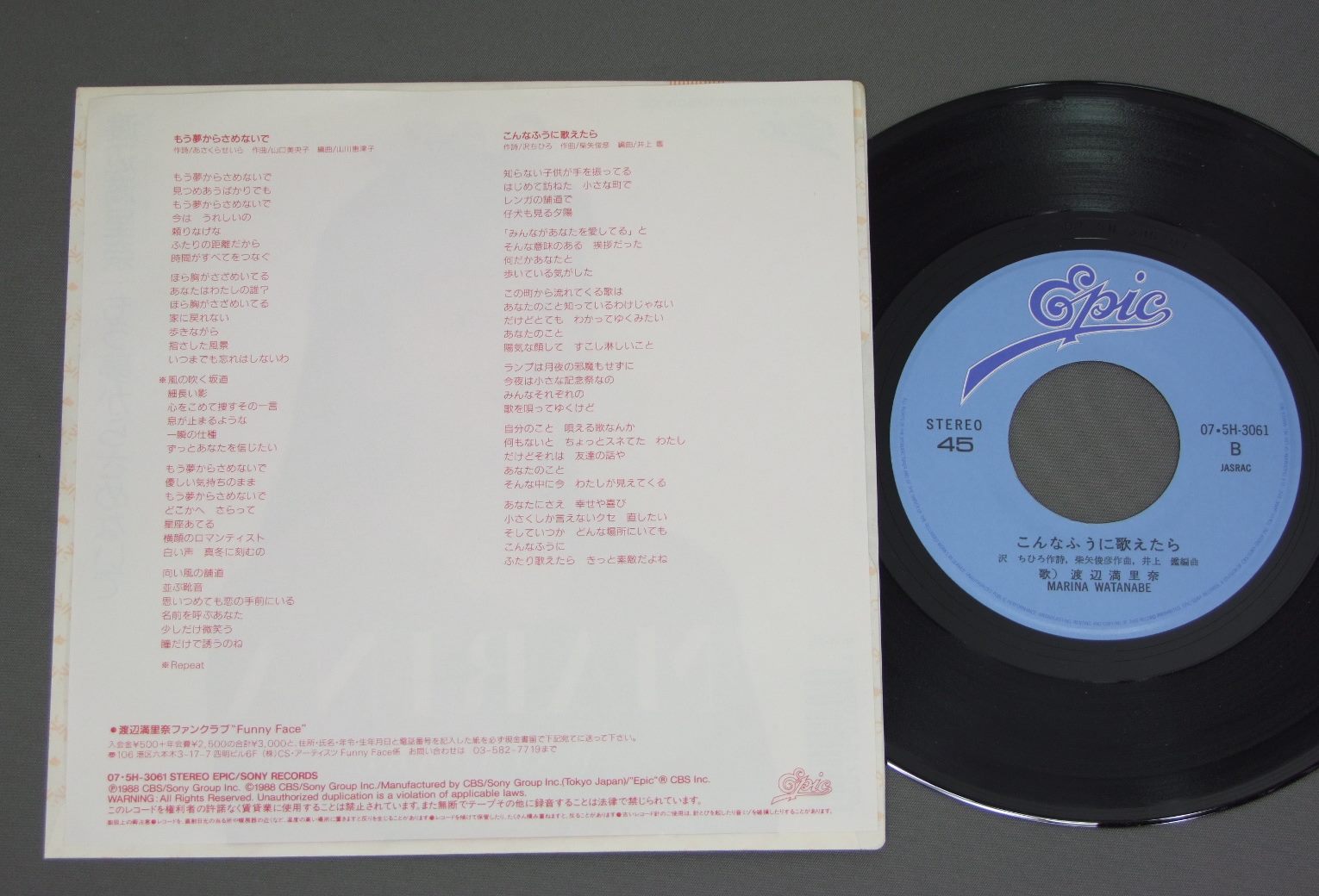 MARINA WATANABE渡辺満里奈/MO YUME KARA SAMENAIDEもう夢からさめないで 07.5H3061 製造国:日本盤 / Media:7inch外観:EX盤の状態:EX+ 価格(税込):¥1,387(売約済) 送料 7inch:定形外郵便 360円~LP:定形外郵便 660円~送料は、注文の最終画面で確認頂けます。 > > MARINA WATANABE/MO YUME KARA SAMENAIDE 外観 (EX)特記事項:特記無し。コンディションリストを参照下さい。外観EXの共通説明:ダメージが限定的。中古品としては保存状態がよい方。シミ、ヨゴレ、スレ 少し~軽度。 盤の状態 (EX+)特記事項:極薄いスリキズ・スレ少し。一見してきれいな状態です。盤EX+の共通説明:盤面の極薄いスリキズ、スレ少し程度 音に出そうなものは無いように見える(極軽微なソフトティック音は除く)。 Tweet それぞれの画像をクリックすると、大きい写真が見られます こちらの商品もお勧めです 880円 MOMOE YAMAGUCHI山口百恵 / 16s THEME16才のテーマ 660円 TOSHIRO OHMI近江俊郎 / BEST COLLECTION懐かしの歌声デラックス 湯の町エレジー 770円 SHOKO SAWADA沢田聖子 / POTENTIALポテンシャル 770円 ERI NITTA新田恵利 / ERI 770円 NAOKO KAWAI河合奈保子 / TWILIGHT DREAM 1,210円 PINK LADYピンク・レディー / `78 JUMPING SUMMER CARNIVAL`78 ジャンピング・サマー・カーニバル 660円 HIROKO TANIYAMA谷山浩子 / MOUHITORI NO ALICEもうひとりのアリス 1,210円 SAORI MINAMI南沙織 / SUFFERING AGEヤングのテーマ 傷つく世代