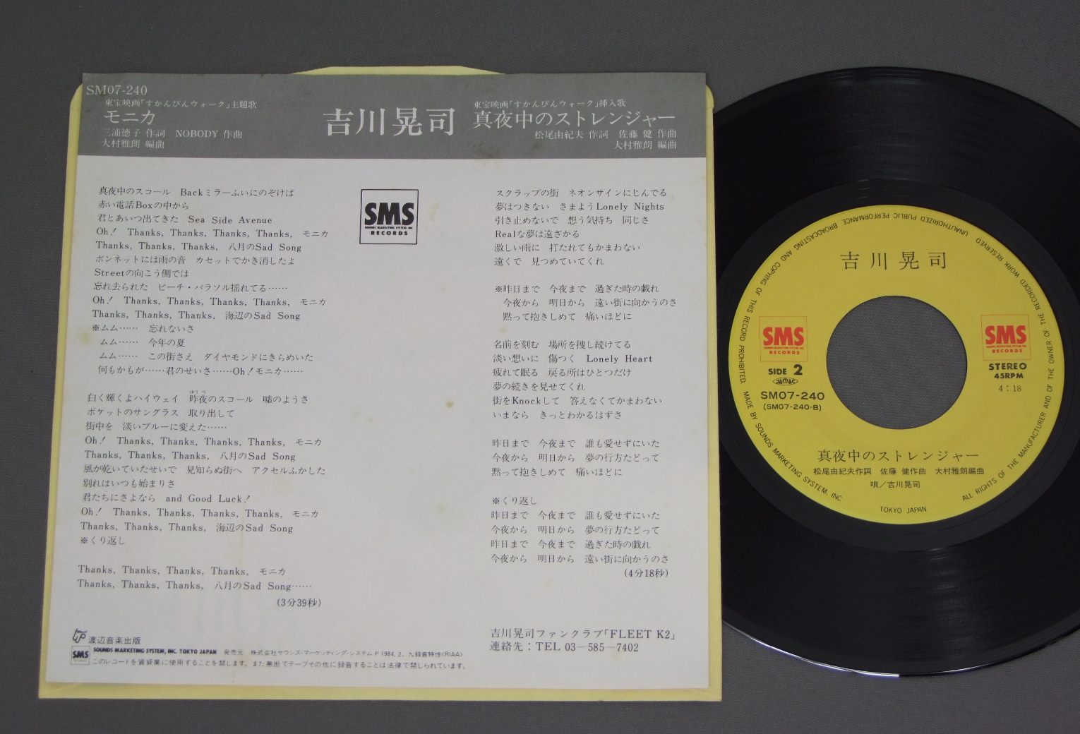 KIKKAWA KOJI吉川晃司/ モニカ SM07240 製造国:日本盤 / Media:7inch外観:EX盤の状態:EX+ 価格(税込):¥330(売約済) 送料 7inch:定形外郵便 360円~LP:定形外郵便 660円~送料は、注文の最終画面で確認頂けます。 > > KIKKAWA KOJI/ 外観 (EX)特記事項:裏ジャケ側にシミが少し外観EXの共通説明:ダメージが限定的。中古品としては保存状態がよい方。シミ、ヨゴレ、スレ 少し~軽度。 盤の状態 (EX+)特記事項:極薄いスリキズ・スレ少し。一見してきれいな状態です。盤EX+の共通説明:盤面の極薄いスリキズ、スレ少し程度 音に出そうなものは無いように見える(極軽微なソフトティック音は除く)。 Tweet それぞれの画像をクリックすると、大きい写真が見られます こちらの商品もお勧めです 3,850円 EIICHI OHTAKI大滝詠一 / EACH TIME MASTER SOUND PRESSINGEACH TIME MASTER SOUND盤 550円 MASAHIRO KUWANA & TEAR DROPS桑名正博 & TEAR FROPS / COMMUNICATIONコミュニケーション 770円 HAJIME TACHIBANA立花はじめ / MR. TECHIE & MISS KIPPLE 770円 IZUMI YUKIMURA雪村いづみ / I`M GETTING MY ACT TOGETHER & TAKING IT ON ROADミュージカル`旅立て女たち` 990円 YOSHIMI HAMADA浜田良美 / SHUNJYU-NO SHOW春秋の章 1,210円 MOMOE YAMAGUCHI山口百恵 / FACE IN A VISIONア・フェイス・イン・ア・ビジョン 1,210円 PEDRO & CAPRICIOUSペドロ &カプリシャス / BEST ALBUMスター・ベスト・ヒット・コレクション 1,210円 CANDIESキャンディーズ / SOUSHUNPU 早春譜