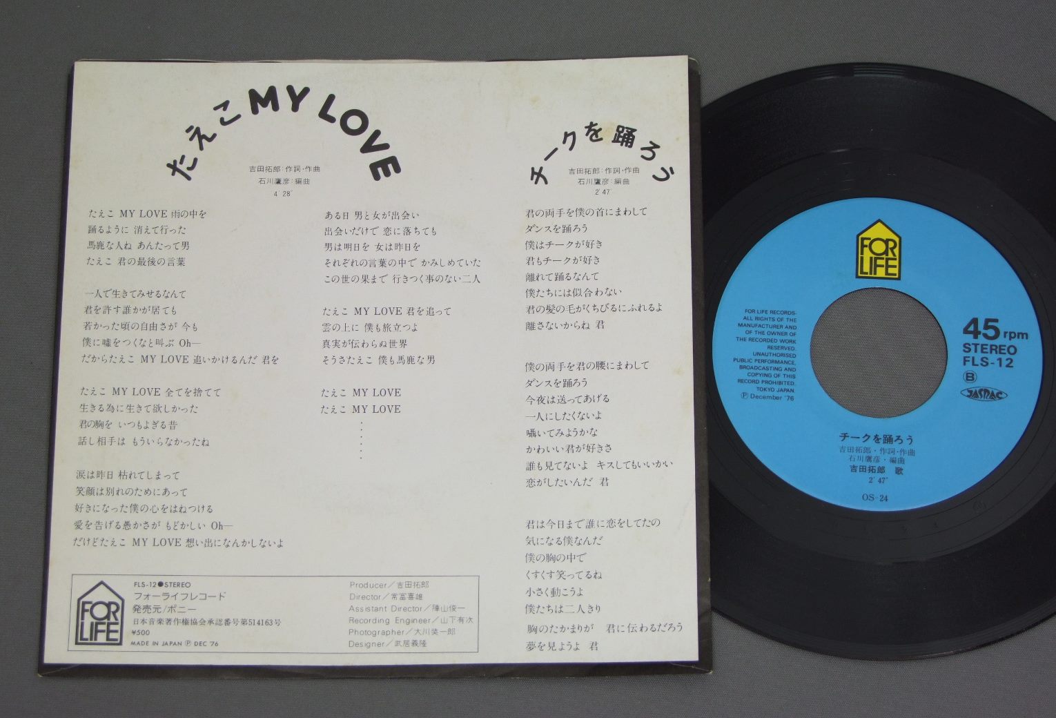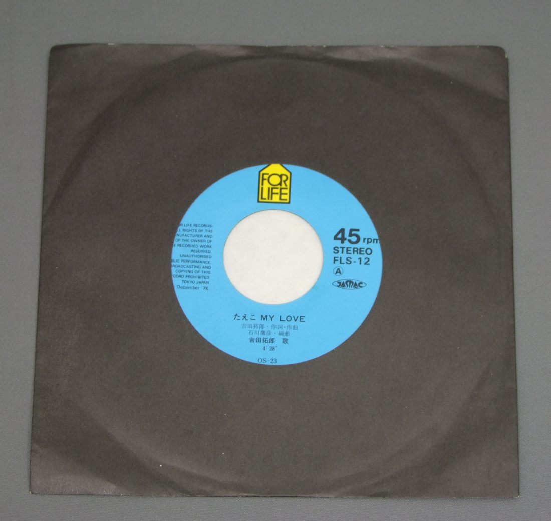 TAKURO YOSHIDA吉田拓郎/TAEKO MY LOVEたえこMY LOVE FLS12 製造国:日本盤 / Media:7inch外観:EX盤の状態:EX 価格(税込):¥330 送料 7inch:定形外郵便 360円~LP:定形外郵便 660円~送料は、注文の最終画面で確認頂けます。 > > TAKURO YOSHIDA/TAEKO MY LOVE 外観 (EX)特記事項:裏ジャケ側にシミが少し外観EXの共通説明:ダメージが限定的。中古品としては保存状態がよい方。シミ、ヨゴレ、スレ 少し~軽度。 盤の状態 (EX)特記事項:薄いスリキズ・スレ軽くある感じ。軽微なものの様子です。盤EXの共通説明:盤面のスリキズが薄いものが少し~軽度 音に出そうなものは無いように見える(軽微なソフトティック音は除く)。 Tweet それぞれの画像をクリックすると、大きい写真が見られます こちらの商品もお勧めです 770円 N.S.P. (NEW SADISTIC PINK)N.S.P. / ORIRO NAOSHIおいろなおし 1,650円 ITSUTSUNO AKAI FUSEN五つの赤い風船 / FOLK ALBUM NO1フォーク・アルバム第1集 1,320円 TOKIKO KATOH AND KIYOSHI HASEGAWA加藤登紀子と長谷川きよし / LIVE 770円 JIRO SUGITA杉田二郎 / 前夜 770円 IRUKAイルカ / NOEL`S FANTASTIC TRIPノエルの不思議な冒険 1,320円 SHIGERU IZUMIYA泉谷しげる / 3rd ALBUM第三集 地球はお祭りさわぎ 1,210円 TOMOYA TAKAISHI高石友也 / FOLK SONGS VOL3坊や大きくならないで フォーク・アルバム第3集 1,980円 JIRO`Sジローズ / BRAND NEW SONGS JORO`S 2新しい唄 ジローズ 2