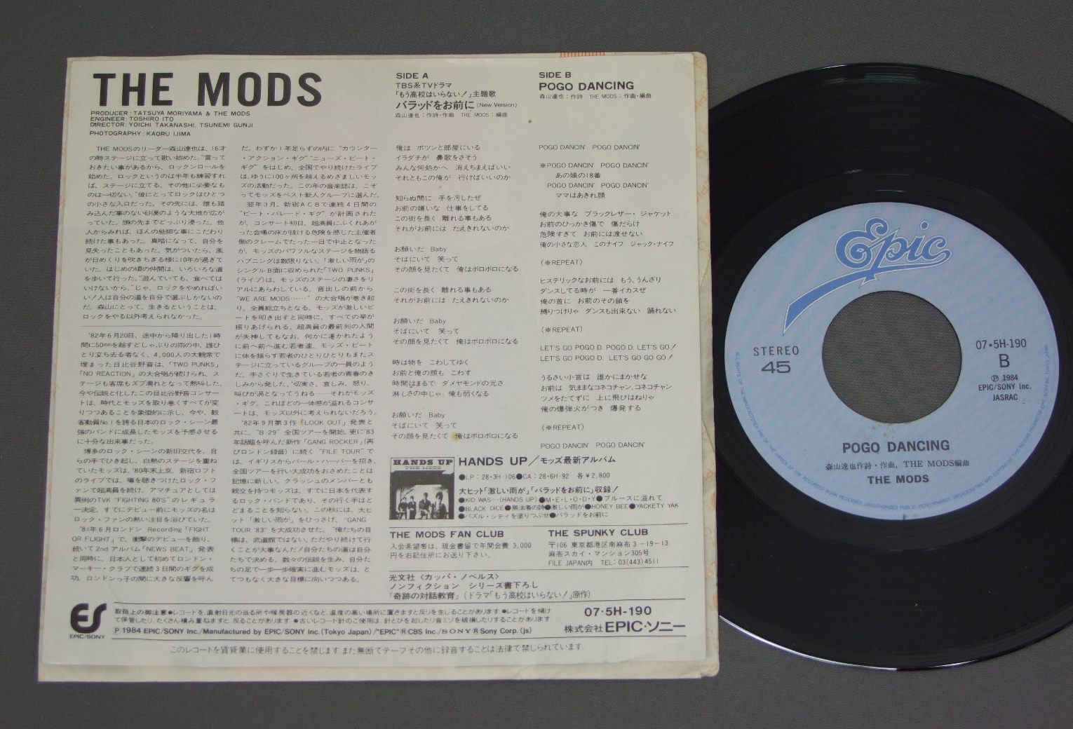 MODSモッズ/BALLAD TO YOUバラッドをお前に 07.5H190 製造国:日本盤 / Media:7inch外観:EX-盤の状態:EX+ 価格(税込):¥770 送料 7inch:定形外郵便 360円~LP:定形外郵便 660円~送料は、注文の最終画面で確認頂けます。 > > MODS/BALLAD TO YOU 外観 (EX-)特記事項:多少ヨレ有り。外観EX-の共通説明:ダメージ軽度~多少。 中古品としては普通の状態。シミ、ヨゴレ、スレなど軽く~多少。 盤の状態 (EX+)特記事項:薄いスリキズ・スレ少し。一見してきれいな状態です。盤EX+の共通説明:盤面の極薄いスリキズ、スレ少し程度 音に出そうなものは無いように見える(極軽微なソフトティック音は除く)。 Tweet それぞれの画像をクリックすると、大きい写真が見られます こちらの商品もお勧めです 770円 CAROLキャロル / CAROL FIRSTキャロル・ファースト 660円 BOW WOW / WARNING FROM STARDUST 2,750円 LAUGHIN` NOSEラフィン・ノーズ / LIVE BLACK BOXLIVE BLACK BOX 1,980円 MODSモッズ / CORNER 1,320円 BROWN SUGARブラウン・シュガー / SEXY BROWN SUGAR 770円 FUZZファズ / ORIM-RAMAZオリム・ラマ 1,320円 EARTH SHAKER / OVER RUN w/POST CARDS 990円 44 MAGUNAM44 マグナム / DANGER MONEY