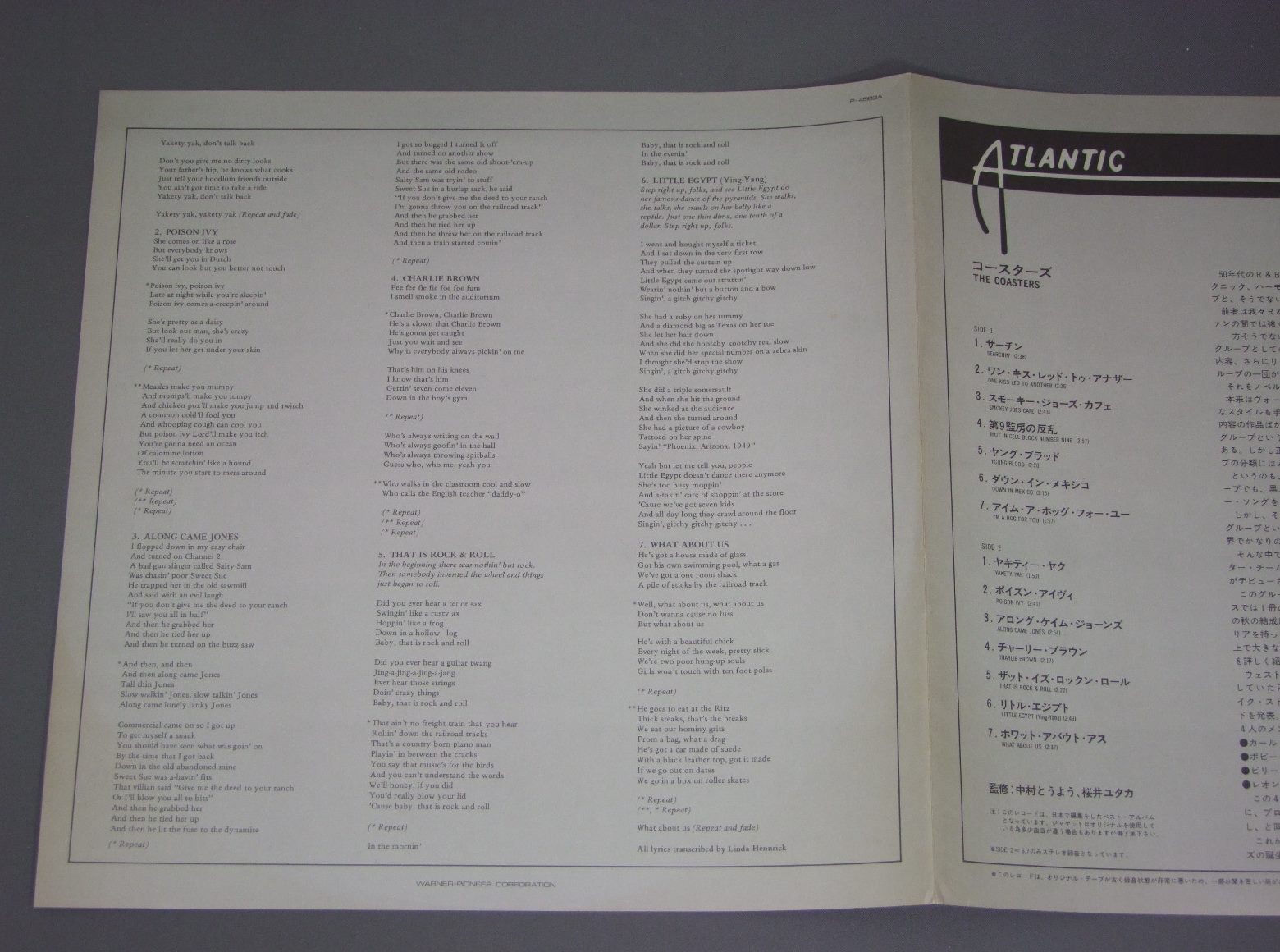 COASTERS/COASTERS P4583A 製造国:日本盤 / Media:LP外観:VG+盤の状態:EX+ 価格(税込):¥734(売約済) 送料 7inch:定形外郵便 360円~LP:定形外郵便 660円~送料は、注文の最終画面で確認頂けます。 > > COASTERS/COASTERS 外観 (VG+)特記事項:背によごれ。上下ヘリスレ大。裏ジャケにシミ有り。外観VG+の共通説明:ダメージやや有り。シミ、ヨゴレ、スレなど多少~やや多め。 盤の状態 (EX+)特記事項:極薄いスリキズ・スレ少しだけ。一見してきれいな状態です。盤EX+の共通説明:盤面の極薄いスリキズ、スレ少し程度 音に出そうなものは無いように見える(極軽微なソフトティック音は除く)。 その他:※画像では確認できない、上下ヘリ、背表紙、取り出し口を中心に状態表記しております。画像で確認出来る表裏ジャケ、レーベルの状態表記は省いている場合がありますので、そちらの状態は画像でご確認をお願い致します。携帯の方は一度PC等で写真をご確認の上ご入札下さいますよう、お願い申し上げます。 Tweet それぞれの画像をクリックすると、大きい写真が見られます こちらの商品もお勧めです 770円 RAY GOODMAN & BROWNレイ、グッドマン&ブラウン / OPEN UPこの愛に気づいたら 1,210円 SMOKEY ROBINSONスモーキー・ロビンソン / SMOKE SIGNALSスモーク・シグナルズ 1,320円 RAY CHARLESレイ・チャールズ / BEST OF RAY CHARLESレイ・チャールズのすべて 1,210円 DAZZ BANDダズ・バンド / KEEP IT LIVEキープ・イット・ライブ 770円 MIRACLESミラクルズ / LOVE CRAZYラブ・クレイジー 770円 CHAMPAIGNシャンペーン / MODERN HEARTモダン・ハート 660円 GLADYS KNIGHT & THE PIPSグラディス・ナイト&ザ・ピップス / IMAGINATIONイマジネイション 440円 VARIOUS GOSPEL SINGERS / RAINBOW OF LIVING GOSPEL虹色の祈り -コンテンポラリー・ゴスペルの世界