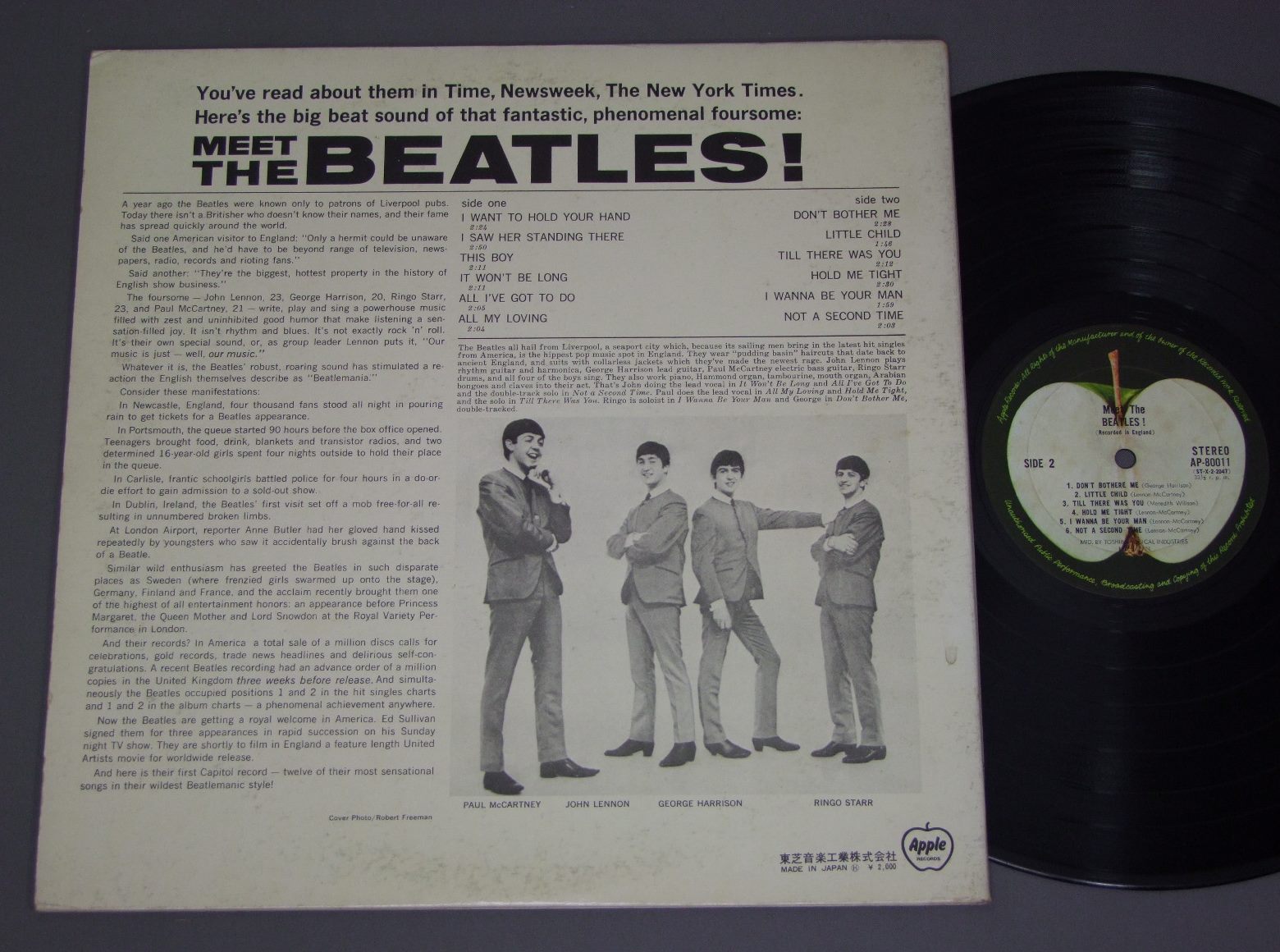 BEATLES/MEET THE BEATLES! AP80011 製造国:日本盤 / Media:LP外観:VG+盤の状態:EX+ 価格(税込):¥770(売約済) 送料 7inch:定形外郵便 360円~LP:定形外郵便 660円~送料は、注文の最終画面で確認頂けます。 > > BEATLES/MEET THE BEATLES! 外観 (VG+)特記事項:背スレやや有り。上ヘリにごれ。ジャケ表面もスレよごれ多い感じ。解説カードに薄いシミ。黒のインナーの附属は有りません。外観VG+の共通説明:ダメージやや有り。シミ、ヨゴレ、スレなど多少~やや多め。 盤の状態 (EX+)特記事項:極薄いスリキズ・スレ少しだけ。一見してきれいな状態です。盤EX+の共通説明:盤面の極薄いスリキズ、スレ少し程度 音に出そうなものは無いように見える(極軽微なソフトティック音は除く)。 Tweet それぞれの画像をクリックすると、大きい写真が見られます こちらの商品もお勧めです 880円 PAUL McCARTNEYポール・マッカートニー / TUG OF WARタグ・オブ・ウォー 880円 PAUL MCCARTNEYポール・マッカートニー / TUG OF WARタッグ・オブ・ウォー 770円 WINGSポール・マッカートニー&ウイングス / VENUS AND MARSヴィーナス・アンド・マース 1,210円 WINGSウィングス / WINGS OVER AMERICAウィングスU.S.A ライヴ 1,650円 GEORGE HARRISONジョージ・ハリソン / EXTRA TEXTUREジョージ・ハリソン帝国 1,980円 GEORGE HARRISONジョージ・ハリスン / LIVING IN THE MATERIAL WORLDリヴィング・イン・ザ・マテリアル・ワールド 880円 WINNGSウイングス / VENUS AND MARS WIGSヴィーナス・アンド・マース 770円 PAUL MCCARTNEY&WINGSポール・マッカートニー&ウイングス / BAND ON THE RUNバンド・オン・ザ・ラン