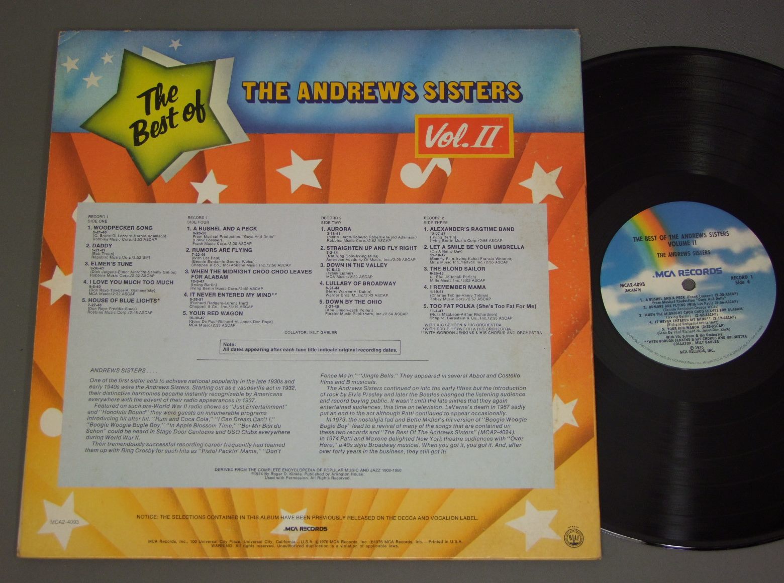 ANDREWS SISTERS/BEST OF THE ANDREWS SISTERS VOL.2 MCA2 4093 製造国:米国盤 / Media:LP外観:VG+盤の状態:EX+ 価格(税込):¥734(売約済) 送料 7inch:定形外郵便 360円~LP:定形外郵便 660円~送料は、注文の最終画面で確認頂けます。 > > ANDREWS SISTERS/BEST OF THE ANDREWS SISTERS VOL.2 外観 (VG+)特記事項:上ヘリにスレ。表裏ジャケ共に上の方に薄いシミやスレ。見開きにも薄いシミ多少有り。外観VG+の共通説明:ダメージやや有り。シミ、ヨゴレ、スレなど多少~やや多め。 盤の状態 (EX+)特記事項:薄いスリキズ・スレ少し。一見してきれいな状態です。盤EX+の共通説明:盤面の極薄いスリキズ、スレ少し程度 音に出そうなものは無いように見える(極軽微なソフトティック音は除く)。 その他:2枚組※画像では確認できない、上下ヘリ、背表紙、取り出し口を中心に状態表記しております。画像で確認出来る表裏ジャケ、レーベルの状態表記は省いている場合がありますので、そちらの状態は画像でご確認をお願い致します。携帯の方は一度PC等で写真をご確認の上ご入札下さいますよう、お願い申し上げます。 Tweet それぞれの画像をクリックすると、大きい写真が見られます こちらの商品もお勧めです 990円 SPIKE JONES / KING OF CORN 1,210円 RALPH SUTTON etc / JAZZ IN THE TROC(RALPH SUTTON AUTOGRAPHED)JAZZ IN THE TROC(RALPH SUTTONサイン付) 1,155円 STANLEY JORDAN / MAGIC TOUCH 770円 JOHNNY WIGGS etc / RECORDED IN NEW ORLEANS VOL2 770円 GEORGE H BUCK JR-AI ROSE etc / NEW ORLEANS DAILY JAZZ 440円 FRANKIE CARLE / HONKY-TONK HITS BY THE DOZEN 1,540円 EARL FATHA HINES / EARL FATHA HINES 770円 MICHEL LEGRANDミッシェル・ルグラン / I LOVE PARIS