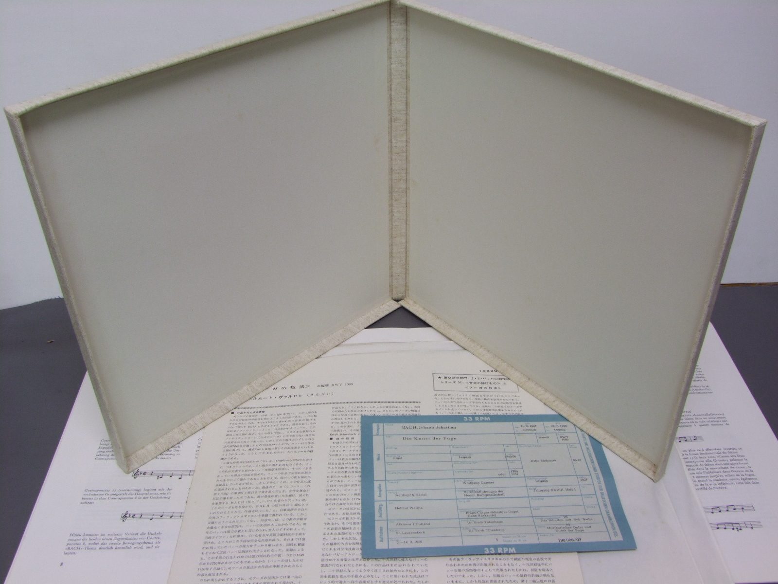 WALCHAヴァルヒャ/JS BACH KUNST DER FUGEバッハ フーガの技法 BOX SET 198 006/7 製造国:独盤 / Media:LP外観:EX+盤の状態:EX+ 価格(税込):¥3,300(売約済) 送料 7inch:定形外郵便 360円~LP:定形外郵便 660円~送料は、注文の最終画面で確認頂けます。 > > WALCHA/JS BACH KUNST DER FUGE 外観 (EX+)特記事項:箱表のステッカー部分に劣化。箱自体はよごれの無い大変きれいな状態。外観EX+の共通説明:中古としては美品、一見してきれいでダメージが軽微。シミ、ヨゴレ、スレ有っても僅か~少し。 盤の状態 (EX+)特記事項:極薄いスリキズ・スレ少し。一見してきれいな状態です。音にでそうなものはほぼ無く、有ってもソフトティック少し程度でしょう。盤EX+の共通説明:盤面の極薄いスリキズ、スレ少し程度 音に出そうなものは無いように見える(極軽微なソフトティック音は除く)。 その他:2枚組※画像では確認できない、上下ヘリ、背表紙、取り出し口を中心に状態表記しております。画像で確認出来る表裏ジャケ、レーベルの状態表記は省いている場合がありますので、そちらの状態は画像でご確認をお願い致します。携帯の方は一度PC等で写真をご確認の上ご入札下さいますよう、お願い申し上げます。 Tweet それぞれの画像をクリックすると、大きい写真が見られます こちらの商品もお勧めです