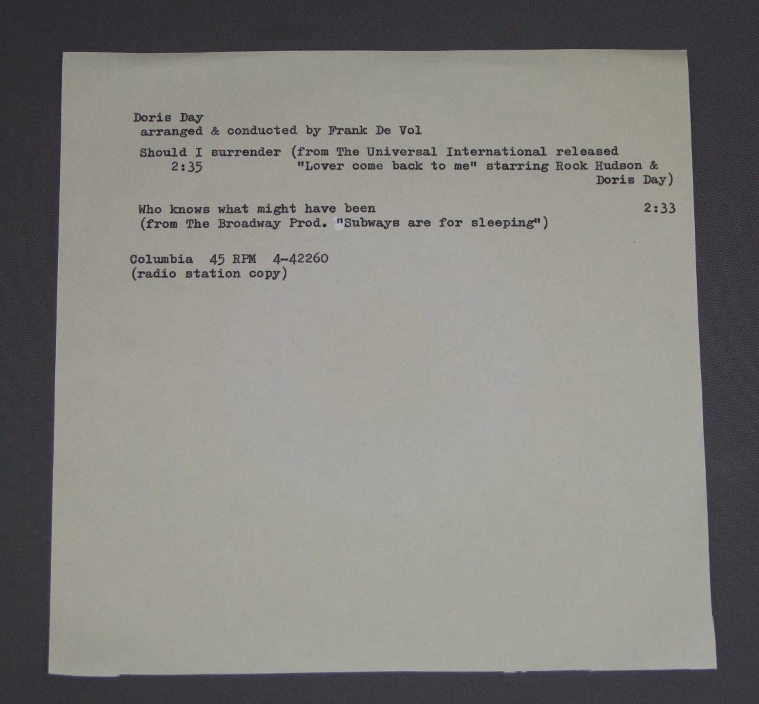 DORIS DAY/SHOULD I SURRENDERプロモ盤 4 42260 製造国:米国盤 / Media:7inch盤の状態:EX+ 価格(税込):¥990(売約済) 送料 7inch:定形外郵便 360円~LP:定形外郵便 660円~送料は、注文の最終画面で確認頂けます。 > > DORIS DAY/SHOULD I SURRENDER 盤の状態 (EX+)特記事項:薄いスリキズ・スレ少し。一見してきれいな状態です。盤EX+の共通説明:盤面の極薄いスリキズ、スレ少し程度 音に出そうなものは無いように見える(極軽微なソフトティック音は除く)。 その他:※画像では確認できない、上下ヘリ、背表紙、取り出し口を中心に状態表記しております。画像で確認出来る表裏ジャケ、レーベルの状態表記は省いている場合がありますので、そちらの状態は画像でご確認をお願い致します。携帯の方は一度PC等で写真をご確認の上ご入札下さいますよう、お願い申し上げます。 Tweet それぞれの画像をクリックすると、大きい写真が見られます こちらの商品もお勧めです 1,100円 NYDIA CARO / NYDIA CARO 990円 MILVA / UNVERKENNBAR 4,400円 JUDY COLLINS / FIFTH ALBUM (MONO) 880円 LIBBY HOLMAN / SOMETHING TO REMEMBER HER BY 1,210円 LORETTA LYNN / WE`VE COME A LONG WAY BABY 990円 MARIANNE FAITHFULL / CHILD`S ADVENTURE 660円 CLAUDIA DE COLOMBIAクラウディア・デ・コロンビア / YO CREO EN TI君を信じて 〜ジョ・クレオ・エンティ〜 1,650円 REGINE / REGINE