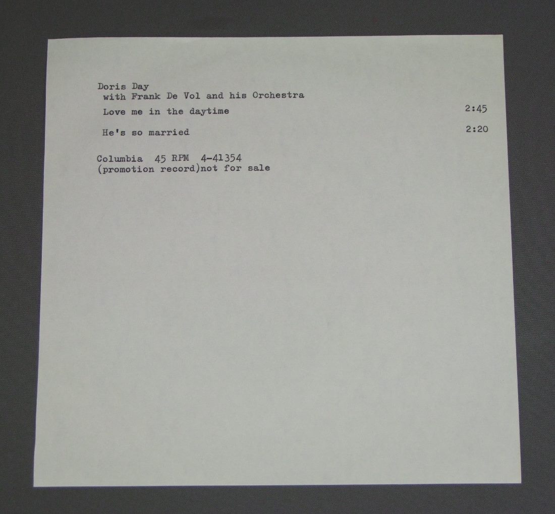 DORIS DAY/LOVE ME IN THE DAYTIMEプロモ盤 4 41354 製造国:米国盤 / Media:7inch盤の状態:EX- 価格(税込):¥660(売約済) 送料 7inch:定形外郵便 360円~LP:定形外郵便 660円~送料は、注文の最終画面で確認頂けます。 > > DORIS DAY/LOVE ME IN THE DAYTIME 盤の状態 (EX-)特記事項:薄いスリキズ・細かい表面スレ多少ある感じ。殆どが軽微なものの様子です。盤EX-の共通説明:盤面のスリキズが多少有り。音に出そうなものは殆ど無いように見える~さほど気にならないぐらいの軽いプチ数カ所程度。 その他:レーベルに書込み。※画像では確認できない、上下ヘリ、背表紙、取り出し口を中心に状態表記しております。画像で確認出来る表裏ジャケ、レーベルの状態表記は省いている場合がありますので、そちらの状態は画像でご確認をお願い致します。携帯の方は一度PC等で写真をご確認の上ご入札下さいますよう、お願い申し上げます。 Tweet それぞれの画像をクリックすると、大きい写真が見られます こちらの商品もお勧めです 770円 DORIS DAY / GREATEST HITS 924円 OLIVEA NEWTON-JOHN / MAKING A GOOD THING BETTER 1,100円 BELINDA CARLISLE / BELINDA CARLISLE STORY ( AIRDATE JULY 15 1988 ) 770円 RITA COOLIDGE / HEARTBREAK RADIO 770円 BUFFY SAINTE-MARIE / I`M GONNA BE A COUNTRY GIRL AGAIN 1,100円 SYLVIA TYSON / COOL WIND FROM THE NORTH 770円 DORIS DAY / BEST OF DORIS DAY 990円 MILVA / UNVERKENNBAR