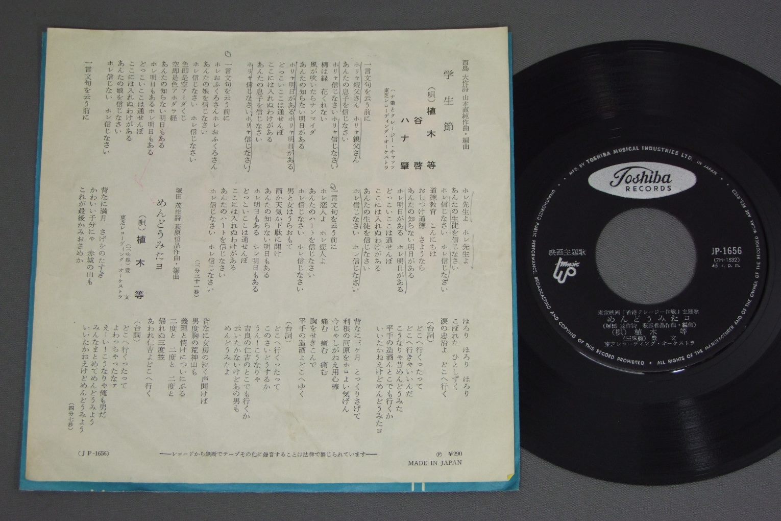 HITOSHI UEKI植木等/ 学生節 JP1658 製造国:日本盤 / Media:7inch外観:VG盤の状態:EX 価格(税込):¥330(売約済) 送料 7inch:定形外郵便 360円~LP:定形外郵便 660円~送料は、注文の最終画面で確認頂けます。 > > HITOSHI UEKI/ 外観 (VG)特記事項:ヨレ多いです。外観VGの共通説明:ダメージが見るからに多い。 盤の状態 (EX)特記事項:薄いスリキズ・スレ軽くある感じ。軽微なものの様子です。盤EXの共通説明:盤面のスリキズが薄いものが少し~軽度 音に出そうなものは無いように見える(軽微なソフトティック音は除く)。 Tweet それぞれの画像をクリックすると、大きい写真が見られます こちらの商品もお勧めです 440円 MASASHI SADAさだまさし / YUME NO WADACHI夢の轍 990円 TULIPチューリップ / LIVE ACT TULIP -VOL2-ライヴ !! アクト・チューリップ -VOL2- 770円 CHIKA UEDA上田知華 / MISS HEARTミス・ハート 2,750円 STAGE 101ステージ101 / AKAI YANE NO IE赤い屋根の家 1,320円 OKAWARI SISTERSおかわりシスターズ / L.A.S.Tラ・ス・ト カレンダー付 880円 YASUHIRO SUZUKI鈴木康博 / SING MODEシング・モード 550円 MIKI ASAKURA麻倉未稀 / HERO & HEROINEHERO & HEROINE 990円 SQUAREスクェア / ADVENTURESアドヴェンチャー