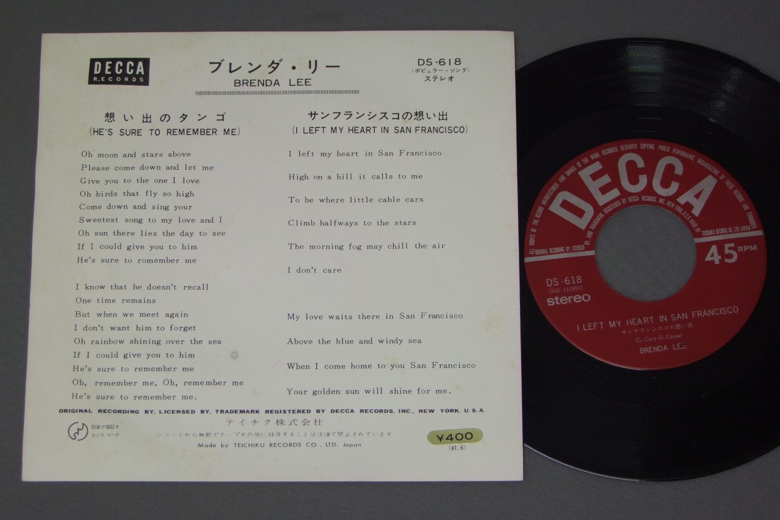 BRENDA LEEブレンダ・リー/HE`S SURE TO REMEMBER ME想い出のタンゴ DS618 製造国:日本盤 / Media:7inch外観:EX盤の状態:EX- 価格(税込):¥914(売約済) 送料 7inch:定形外郵便 360円~LP:定形外郵便 660円~送料は、注文の最終画面で確認頂けます。 > > BRENDA LEE/HE`S SURE TO REMEMBER ME 外観 (EX)特記事項:軽いヨレやスレが少し。裏側は薄いシミやよごれ有り。外観EXの共通説明:ダメージが限定的。中古品としては保存状態がよい方。シミ、ヨゴレ、スレ 少し~軽度。 盤の状態 (EX-)特記事項:薄いスリキズ・細かい表面スレ軽くある感じ。全体的には殆どが軽微なものの様子です。盤EX-の共通説明:盤面のスリキズが多少有り。音に出そうなものは殆ど無いように見える~さほど気にならないぐらいの軽いプチ数カ所程度。 Tweet それぞれの画像をクリックすると、大きい写真が見られます こちらの商品もお勧めです 770円 MAHALIA JACKSONマヘリア・ジャクソン / MAHALIA JACKSON IN CONCERTマヘリア・ジャクソン・イン・コンサート 990円 SAMMY DAVIS JRサミー・デイビス・ジュニア / AT THE COCOANUT GROVE VOL2 60s ISSUE「サミー・デイビス・ジュニアを聴く夕べ」第2夜 ペラジャケ 440円 BING CROSBYビング・クロスビー / BING CROSBY GOLDEN DISC追悼盤 990円 CLEO LAINEクレオ・レーン / RETURN TO CARNEGIEリターン・トゥ・カーネギー 770円 MITCH MILLER AND THE GANGミッチ・ミラー合唱団 / HOME CHORUS PARTY VOL2 60s ISSUEホーム・コーラス・パーティ 第2集 ペラジャケ 770円 NANCY WILSONナンシー・ウィルソン / I`LL BE A SONGアイル・ビー・ア・ソング 660円 TONY MARTINトニー・マーチン / BEST OF TONY MARTINベスト・オブ・トニー・マーチン 660円 PAUL ROBESONポール・ロブスン / PAUL ROBESON AT CARNEGIE HALLカーネギー・ホールのポール・ロブスン