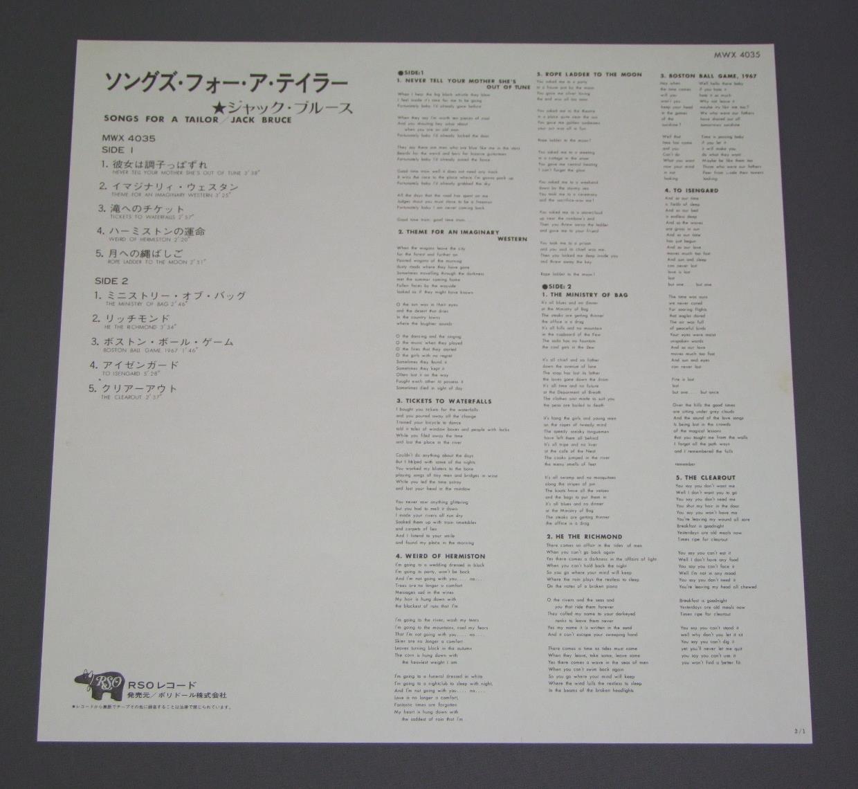 JACK BRUCE/SONGS FOR A TAILOR MWX4035 製造国:日本盤 / Media:LP外観:EX盤の状態:EX+ 価格(税込):¥1,100(売約済) 送料 7inch:定形外郵便 360円~LP:定形外郵便 660円~送料は、注文の最終画面で確認頂けます。 > > JACK BRUCE/SONGS FOR A TAILOR 外観 (EX)特記事項:上ヘリにスレ多少有り。外観EXの共通説明:ダメージが限定的。中古品としては保存状態がよい方。シミ、ヨゴレ、スレ 少し~軽度。 盤の状態 (EX+)特記事項:極薄いスリキズ・スレ少しだけ。一見してきれいな状態です。盤EX+の共通説明:盤面の極薄いスリキズ、スレ少し程度 音に出そうなものは無いように見える(極軽微なソフトティック音は除く)。 Tweet それぞれの画像をクリックすると、大きい写真が見られます こちらの商品もお勧めです 770円 ELTON JOHNエルトン・ジョン / ROCK OF THE WESTIESロック・オブ・ザ・ウェスティーズ 1,210円 TOMMY SHAWトミー・ショウ / GIRLS WITH GUNSガール・ウィズ・ガン 990円 RANDY VANWARMERランディ・ヴァンウォーマー / WARMERアメリカン・モーニング 990円 PAUL ANKAポール・アンカ / BEST OF PAUL ANKAポール・アンカのすべて 660円 BERTIE HIGGINSバーティ・ヒギンズ / JUST ANOTHER DAY IN PARADISEカサブランカ 1,210円 TIM GOODMANティム・グッドマン / FOOTSTEPSフリーダム・ストリート 550円 TOM JONESトム・ジョーンズ / LIVE IN LAS VEGASライヴ・イン・ラスヴェガス 990円 SHAUN CASSIDYショーン・キャシディ / ROOM SERVICEルーム・サーヴィス