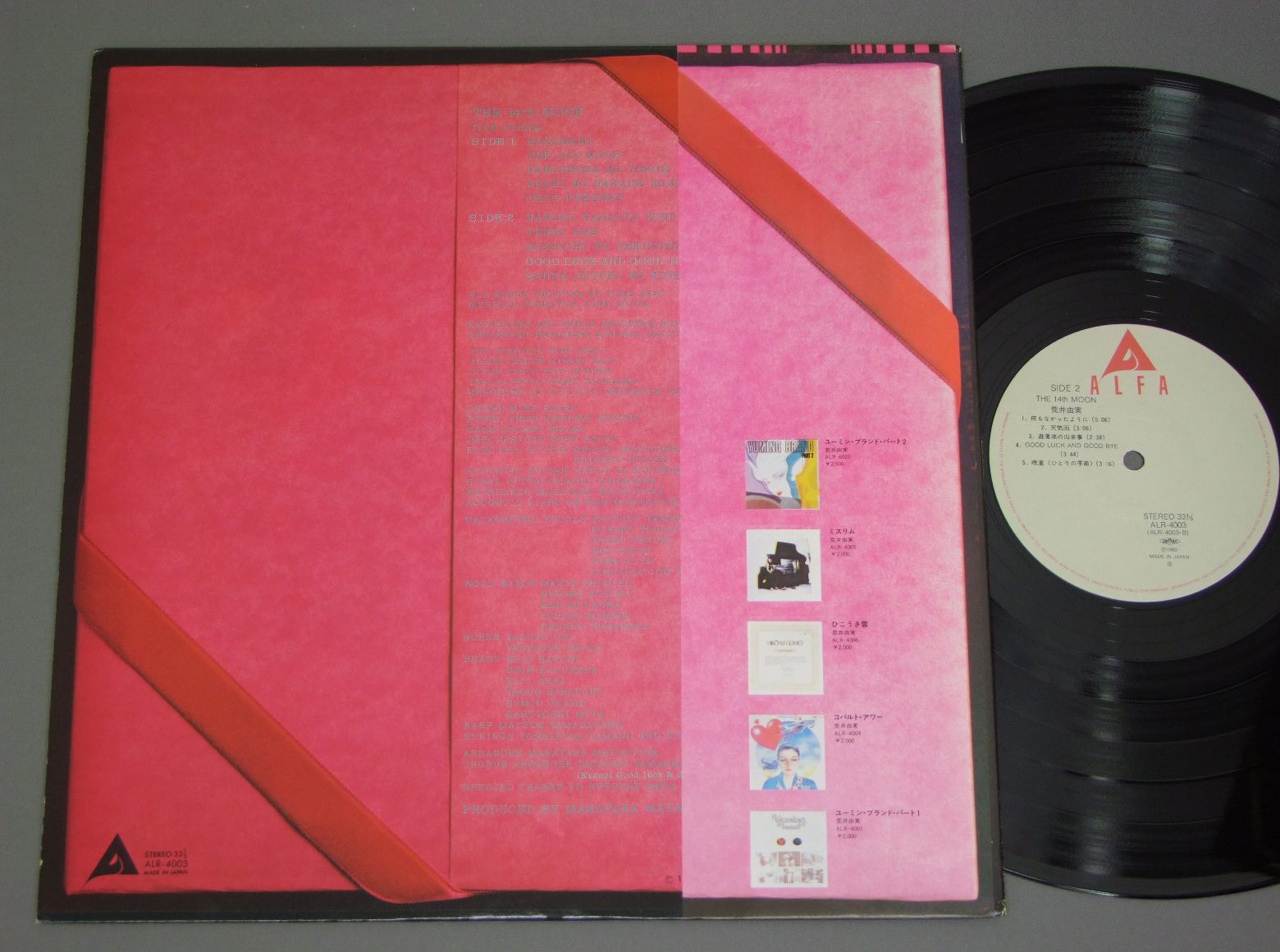 荒井由実/14TH MOON14番目の月 ALR4003 製造国:日本盤 / Media:LP外観:EX盤の状態:EX+帯:EX 価格(税込):¥770(売約済) 送料 7inch:定形外郵便 360円~LP:定形外郵便 660円~送料は、注文の最終画面で確認頂けます。 > > /14TH MOON 外観 (EX)特記事項:薄いシミが少し。歌詞カードにシミ。外観EXの共通説明:ダメージが限定的。中古品としては保存状態がよい方。シミ、ヨゴレ、スレ 少し~軽度。 盤の状態 (EX+)特記事項:薄いスリキズ・スレ少し。一見してきれいな状態です。盤EX+の共通説明:盤面の極薄いスリキズ、スレ少し程度 音に出そうなものは無いように見える(極軽微なソフトティック音は除く)。 帯の状態 (EX):特記無し。コンディションリストを参照下さい。 その他:※画像では確認できない、上下ヘリ、背表紙、取り出し口を中心に状態表記しております。画像で確認出来る表裏ジャケ、レーベルの状態表記は省いている場合がありますので、そちらの状態は画像でご確認をお願い致します。携帯の方は一度PC等で写真をご確認の上ご入札下さいますよう、お願い申し上げます。 Tweet それぞれの画像をクリックすると、大きい写真が見られます こちらの商品もお勧めです 1,320円 NANA KINOMI木の実ナナ / BEST OF NANAベスト・オブ・ナナ-うぬぼれワルツ 1,210円 MOMOE YAMAGUCHI山口百恵 / FACE IN A VISIONア・フェイス・イン・ア・ビジョン 550円 MASAHIRO KUWANA & TEAR DROPS桑名正博 & TEAR FROPS / COMMUNICATIONコミュニケーション 1,210円 PEDRO & CAPRICIOUSペドロ&カプリシャス / お気に召すまま 990円 YOUSUI INOUE井上陽水 / LIVE陽水ライヴ-もどり道 660円 MASAMICHI SUGI杉真理 / MISTONEミストーン 770円 EPOエポ / PUMP ! PUMP ! 1,210円 TULIPチューリップ / 10TH ODYSSEY
