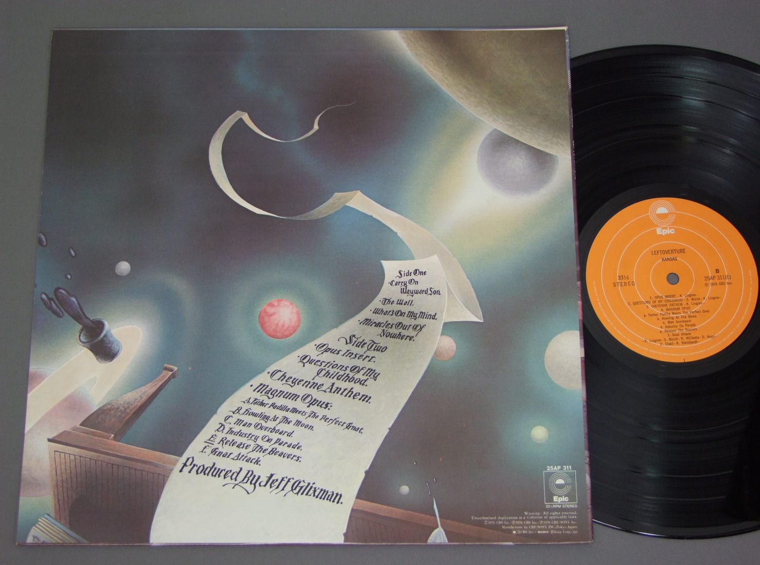 KANSAS/LEFTOVERTURE永遠の序曲 25AP311 製造国:日本盤 / Media:LP外観:EX+盤の状態:EX 価格(税込):¥1,047(売約済) 送料 7inch:定形外郵便 360円~LP:定形外郵便 660円~送料は、注文の最終画面で確認頂けます。 > > KANSAS/LEFTOVERTURE 外観 (EX+)特記事項:特記無し。コンディションリストを参照下さい。外観EX+の共通説明:中古としては美品、一見してきれいでダメージが軽微。シミ、ヨゴレ、スレ有っても僅か~少し。 盤の状態 (EX)特記事項:薄いスリキズ・スレ軽くある感じ。軽微なものの様子です。盤EXの共通説明:盤面のスリキズが薄いものが少し~軽度 音に出そうなものは無いように見える(軽微なソフトティック音は除く)。 その他:※画像では確認できない、上下ヘリ、背表紙、取り出し口を中心に状態表記しております。画像で確認出来る表裏ジャケ、レーベルの状態表記は省いている場合がありますので、そちらの状態は画像でご確認をお願い致します。携帯の方は一度PC等で写真をご確認の上ご入札下さいますよう、お願い申し上げます。 Tweet それぞれの画像をクリックすると、大きい写真が見られます こちらの商品もお勧めです 660円 DOOBIE BROTHERSドゥービー・ブラザーズ / ONE STEP CLOSERワン・ステップ・クローサー 990円 BYREDSバーズ / BYRDSバーズ 880円 JOHN CAFFERTY AND BEAVER BROWN BAND / TOUGH ALL OVER 770円 TOTO / ISOLATION + STICKERSアイソレーション 770円 MARC TANNER BANDマーク・タナー・バンド / TEMPTATIONテンプテーション 770円 STYXスティクス / BEST OF STYXレディ ( スティクス・ベスト ) 1,650円 HASSLESハッスルズ / HOUR OF THE WOLF孤狼の時 770円 REO SPEED WAGONREOスピード・ワゴン / REO SPEED WAGON LIVEREO ライブ 嵐の中へ