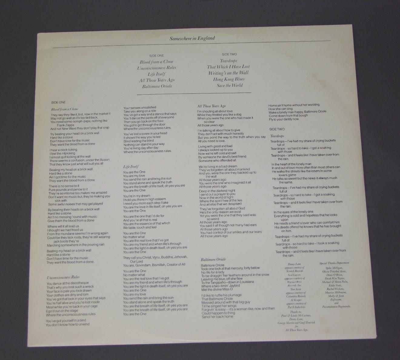GEORGE HARRISON/SOMEWHERE IN ENGLAND K56870 製造国:英国盤 / Media:LPMatrix:A3 | B3外観:EX盤の状態:EX 価格(税込):¥5,500(売約済) 送料 7inch:定形外郵便 360円~LP:定形外郵便 660円~送料は、注文の最終画面で確認頂けます。 > > GEORGE HARRISON/SOMEWHERE IN ENGLAND 外観 (EX)特記事項:底スレやや有り。背や上ヘリのスレはそうでも無いです。ジャケ表面はスレやスリキズ、よごれ等は全体的に薄い感じ。オリジナルインナーは多少薄いよごれ有り。外観EXの共通説明:ダメージが限定的。中古品としては保存状態がよい方。シミ、ヨゴレ、スレ 少し~軽度。 盤の状態 (EX)特記事項:薄いスリキズ・スレ少しある程度。音に出そうなものもなく一見してきれいな状態です。曲間など、静かなところを中心に聴いて見ましたが、チリノイズ少ないきれいな再生具合でした。盤EXの共通説明:盤面のスリキズが薄いものが少し~軽度 音に出そうなものは無いように見える(軽微なソフトティック音は除く)。 Tweet それぞれの画像をクリックすると、大きい写真が見られます こちらの商品もお勧めです 5,500円 JOHN LENNON / SHAVED FISH 4,950円 JOHN & YOKO - PLASTIC ONO BANDF / SOME TIME IN NEW YORK CITY 5,500円 BEATLES / AT THE HOLLYWOOD BOWL 5,500円 GEORGE HARRISON / LIVING IN THE MATERIAL WORLD 5,500円 GEORGE HARRISON / THIRTY THREE & 1/3